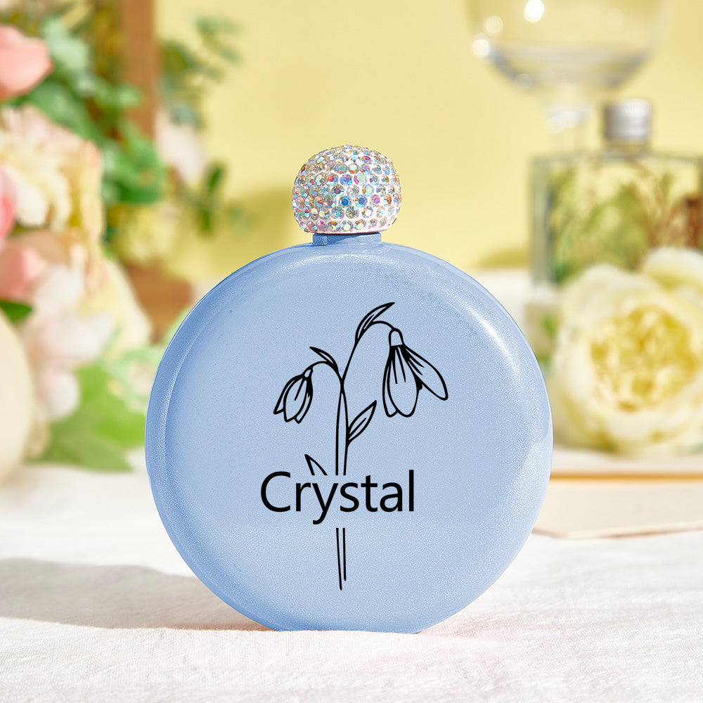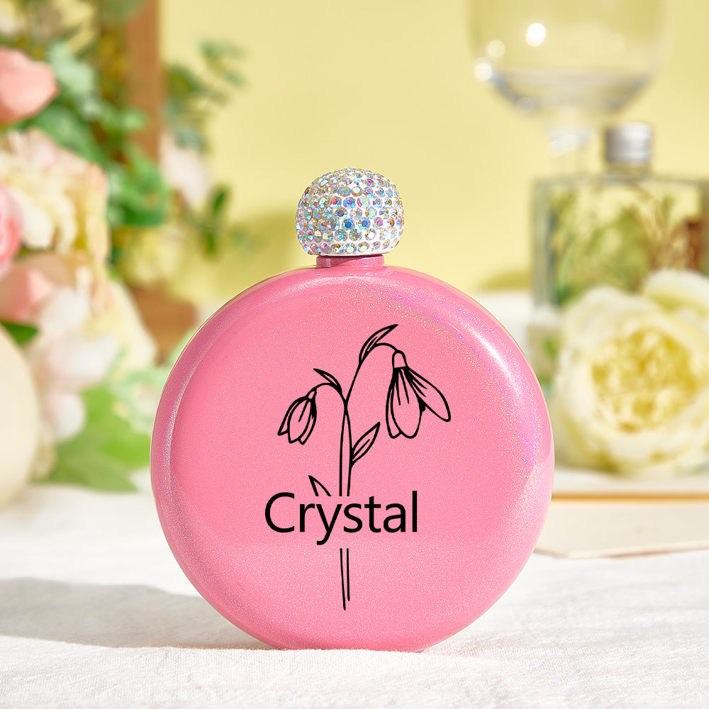 Personalisierte Geburtsblumen-rundflaschen Mit Namen, 142 Ml, Glitzernde Flasche, Hochzeit, Geburtstag, Geschenk Für Sie