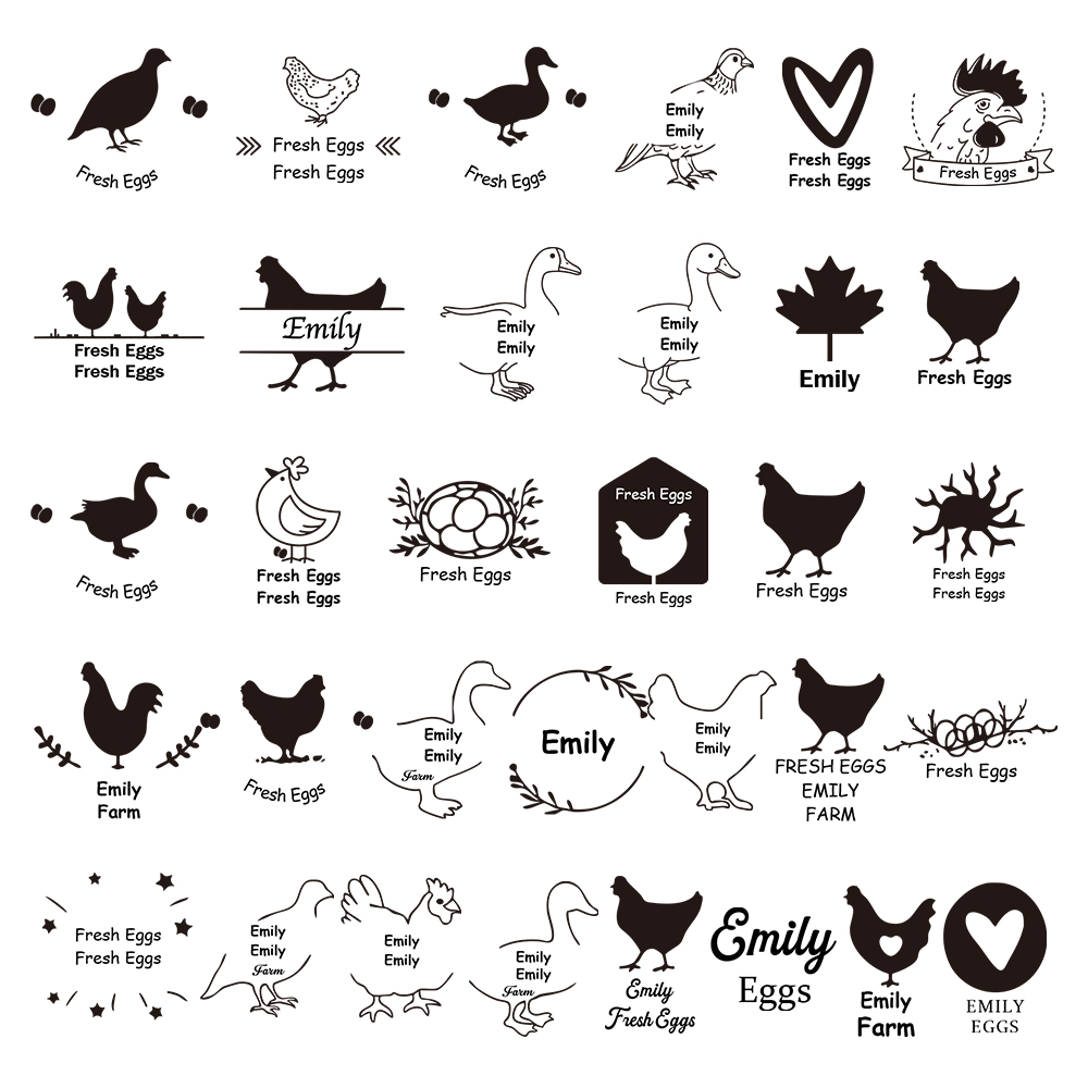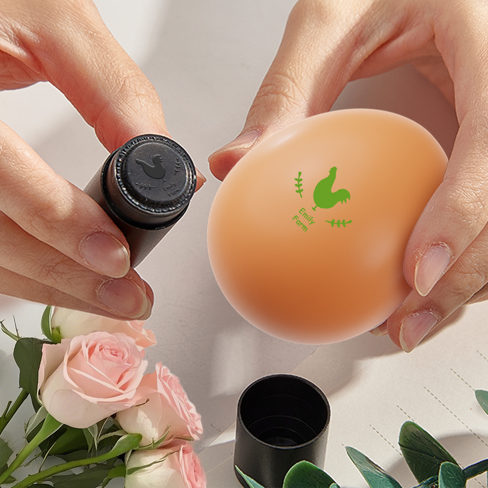Dieser einzigartige Eierstempel mit Hühnersilhouette ziert jedes Ei und jeden Eierkarton. Sie können Text wie Ihren Nachnamen oder eine besondere Botschaft hinzufügen und so jedes Ei zu einem einzigartigen Andenken machen, das nicht nur die Präsentation des Eis aufwertet, sondern auch Ihren Stolz als Landwirt oder Züchter widerspiegelt.