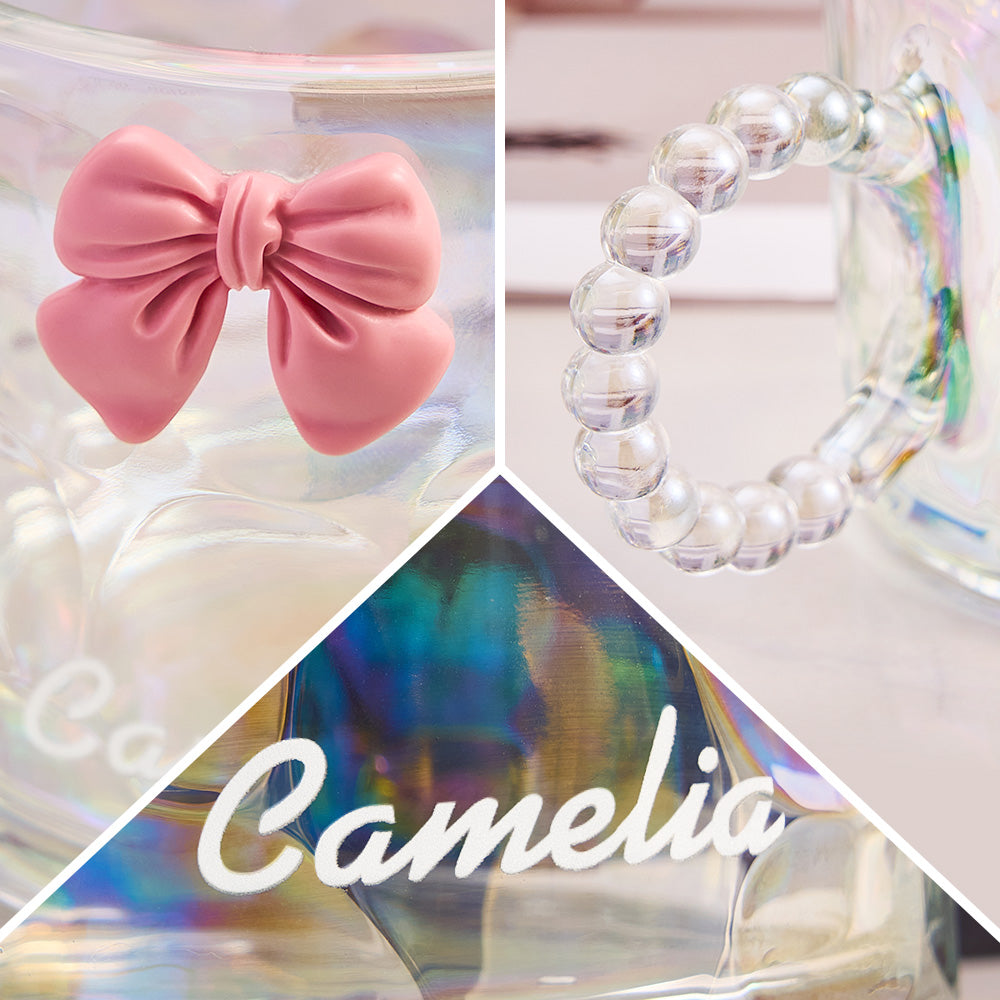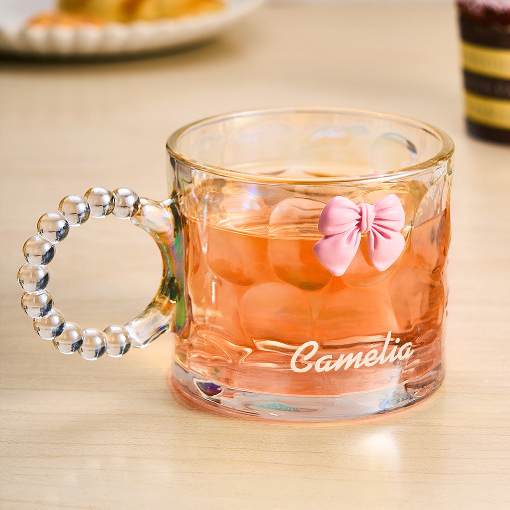 Personalisierte Kokette-schleifentasse Mit Namensgravur, Kaffeetasse Aus Glas, Geschenk Für Sie