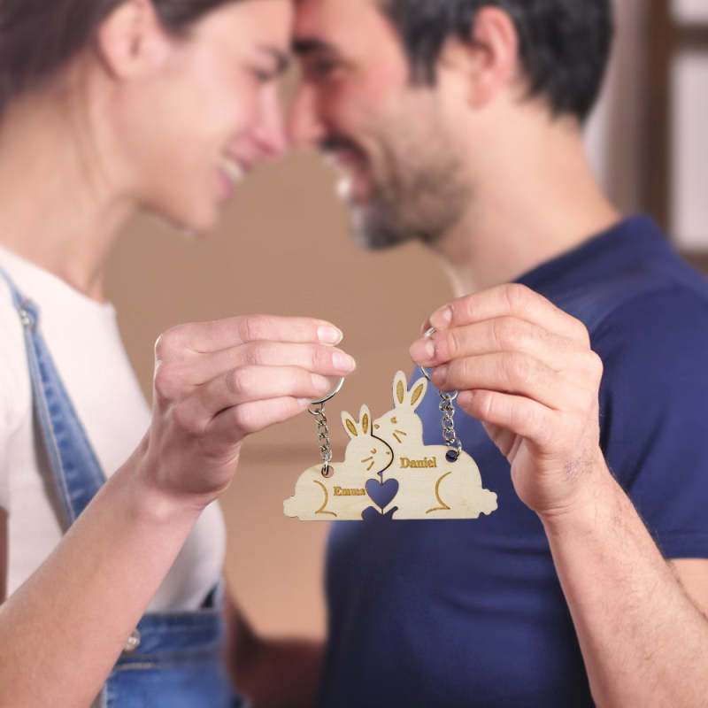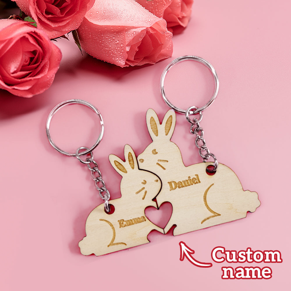 Personalisierter Passender Schlüsselanhänger Für Paare, Individuell Passender Hasen-schlüsselanhänger, Valentinstagsgeschenke Für Liebhaber
