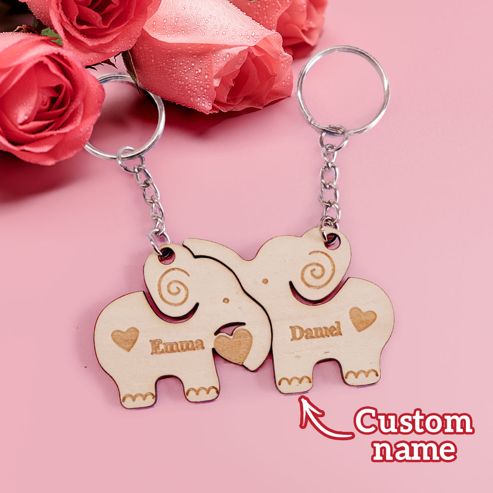 Personalisierter Paar-passender Schlüsselanhänger, Individuell Passender Elefanten-schlüsselanhänger, Valentinstagsgeschenke Für Liebhaber