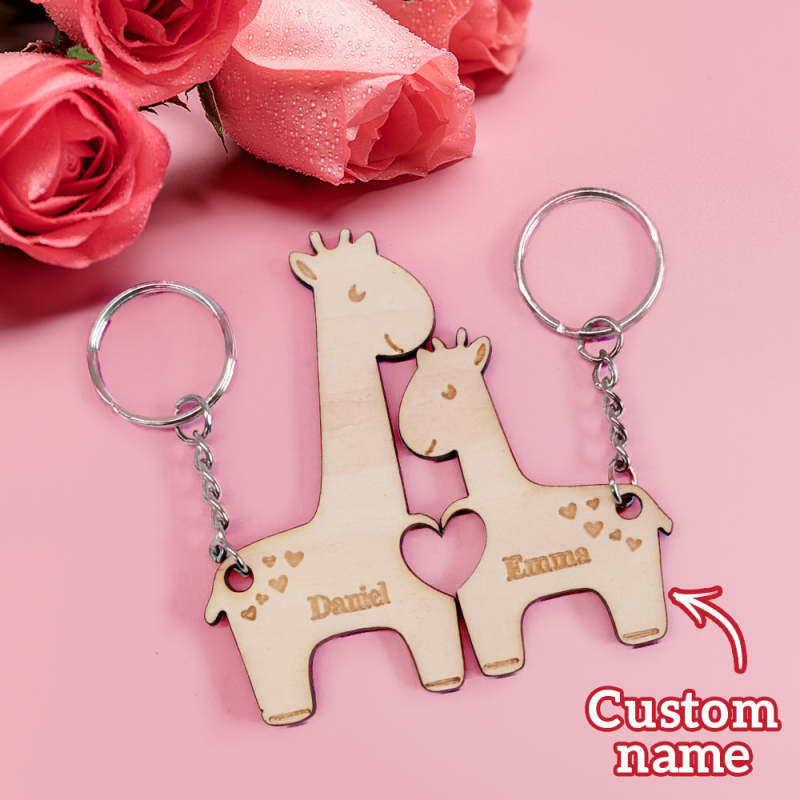 Personalisierter Paar-schlüsselanhänger, Individuell Passender Giraffen-schlüsselanhänger, Valentinstagsgeschenke Für Liebhaber