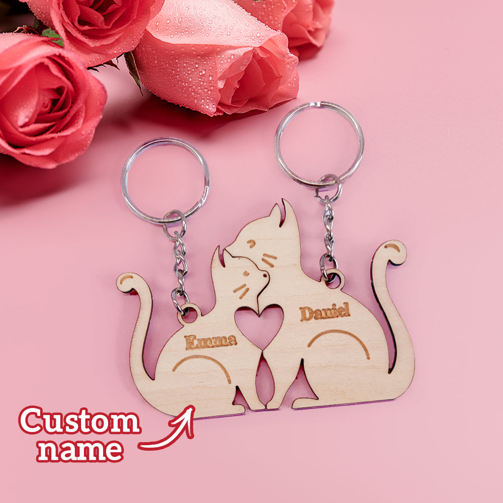 Personalisierter Passender Schlüsselanhänger Für Paare, Individuell Passender Umarmungskatzen-schlüsselanhänger, Valentinstagsgeschenke Für Liebhaber