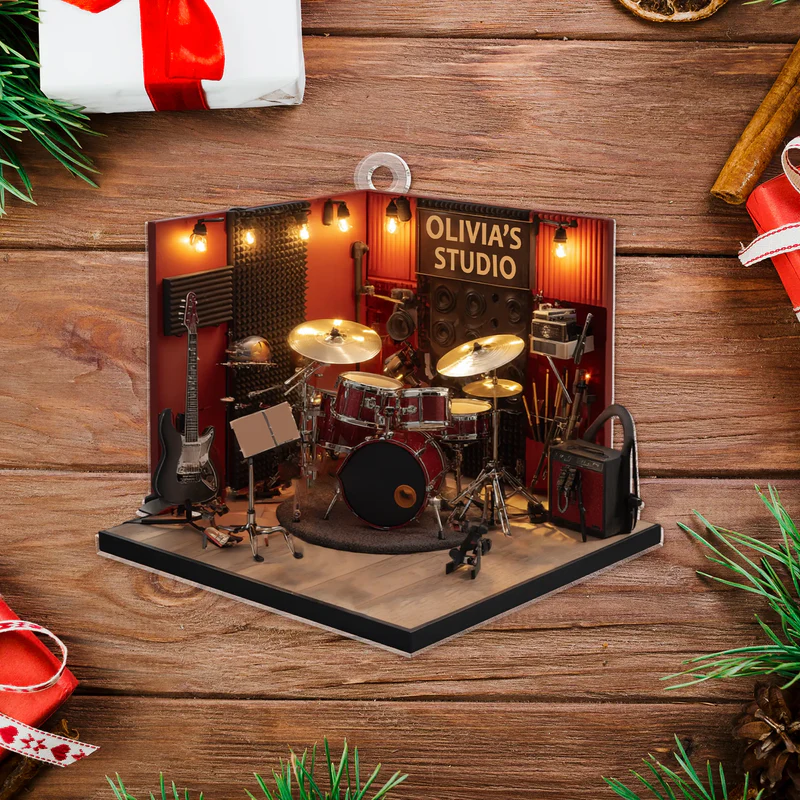 Personalisiertes Drum Studio 2d Flaches Acrylornament – individuelle Weihnachtsdekoration Für Das Musikzimmer, Geschenk Für Schlagzeuger Und Musiker