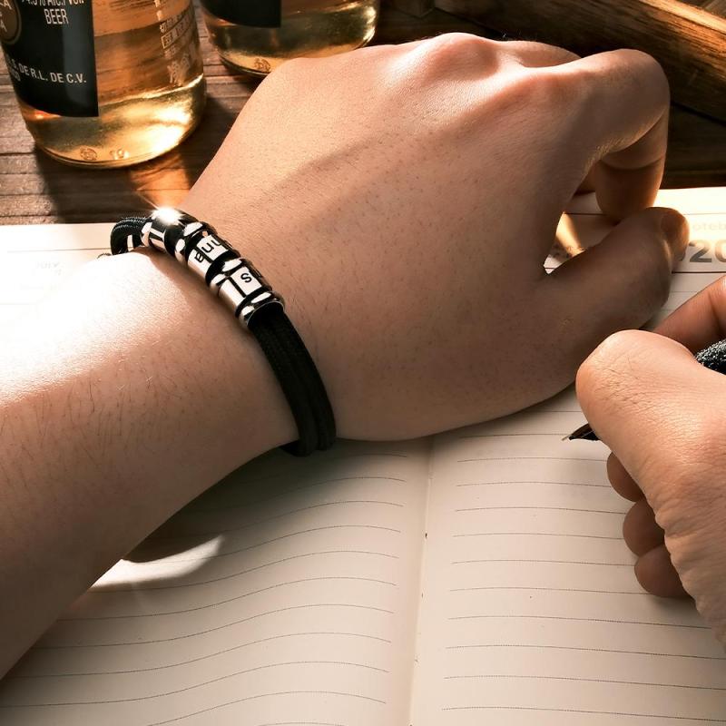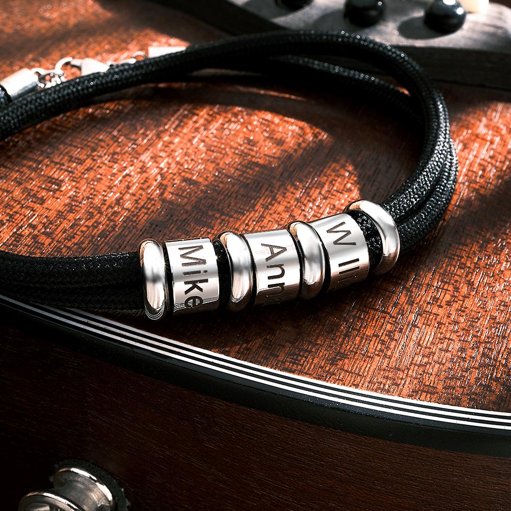 Personalisiertes Armband Mit Gravierten Perlen Geflochtenes Armband Individuelles Namensarmband Vatertagsgeschenk