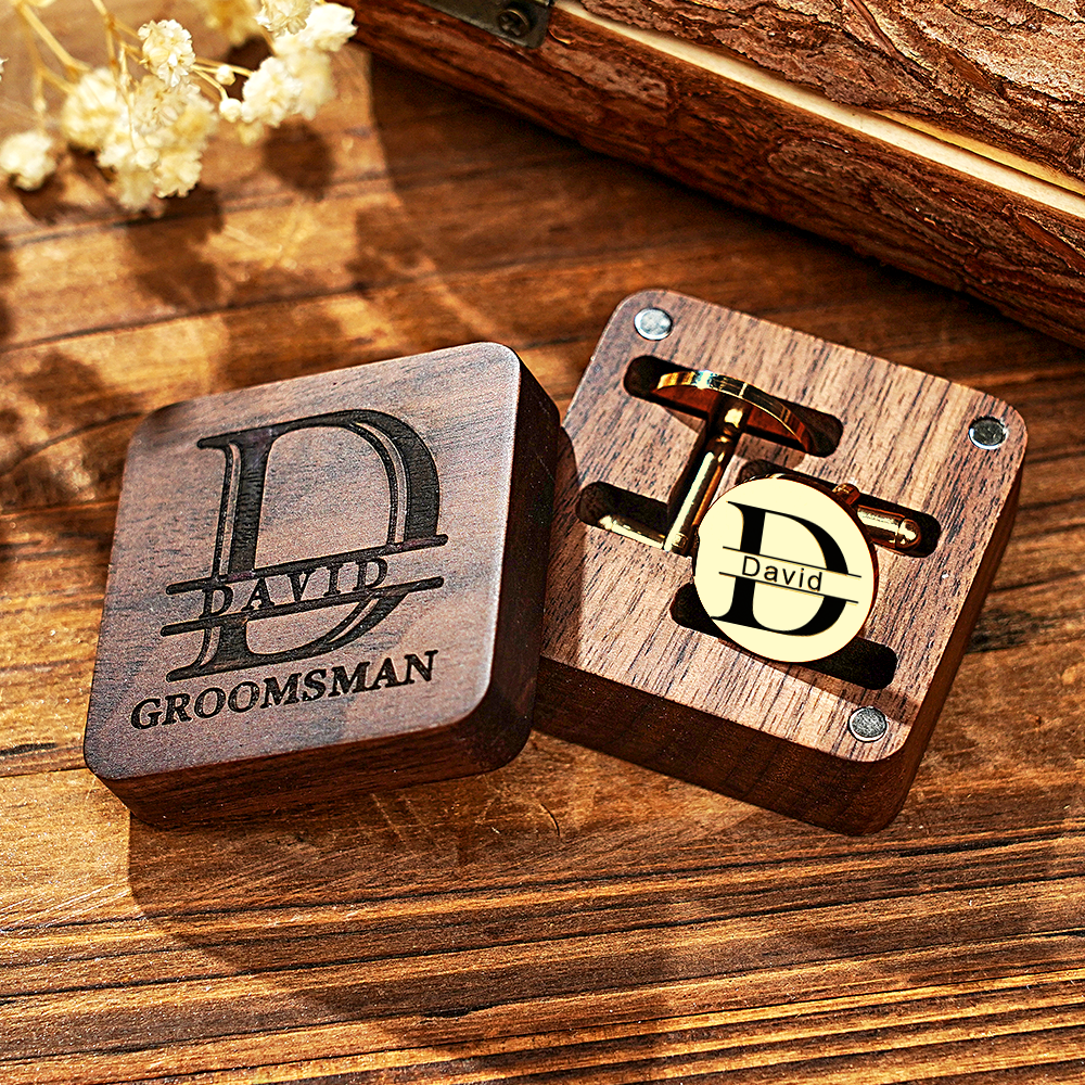 Personalisiertes Manschettenknopf-set Mit Gravur Und Holzbox, Hochzeitsgeschenk Für Männer Und Trauzeugen