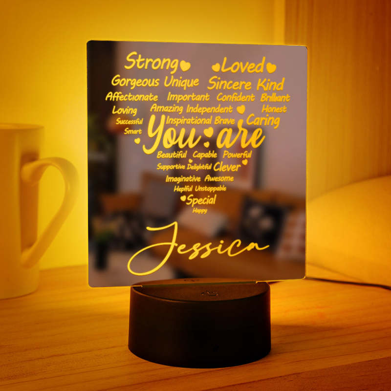 Personalisiertes Graviertes Spiegellicht-herz, Bunte Lampe, Geschenk