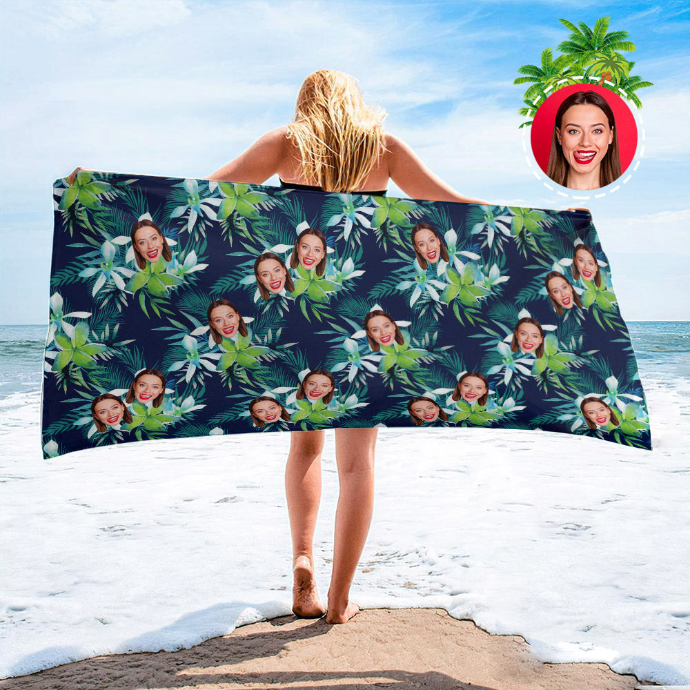Personalisiertes Strandtuch mit Gesicht, individuelles Strandtuch im hawaiianischen Stil, lustiges Geschenk