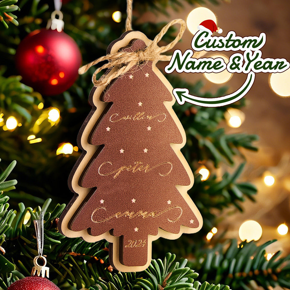 Dieser personalisierte Familien-Weihnachtsschmuck ist die perfekte Ergänzung zu Ihrer Weihnachtsdekoration. Dieses Ornament verfügt über ein Weihnachtsbaumdesign mit Platz für Ihre Familiennamen und kann für eine festliche Note personalisiert werden. Dieses Ornament ist ein langlebiges und bedeutungsvolles Andenken für viele Jahre.