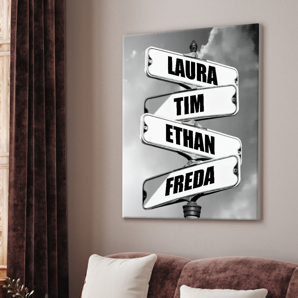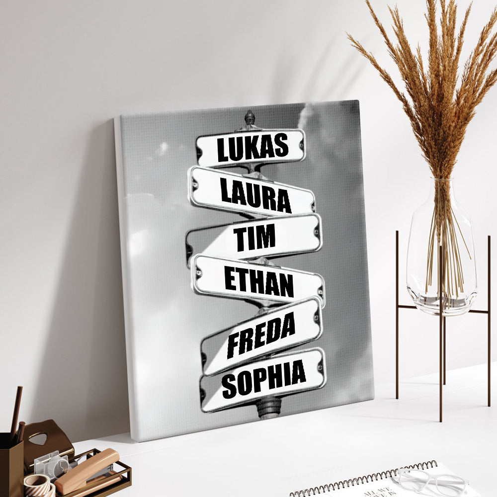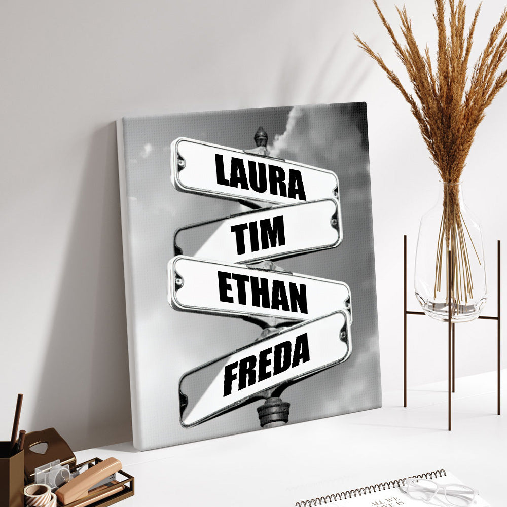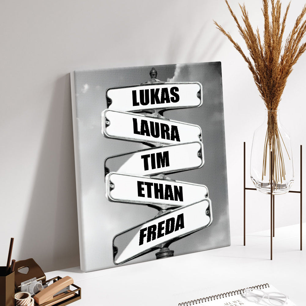 Personalisiertes Familienname Leinwandkreuzung Vintage Straßenschild Jubiläumsgeschenk Für Familien(Canvas Only/DIY Frame)