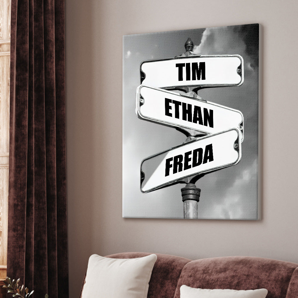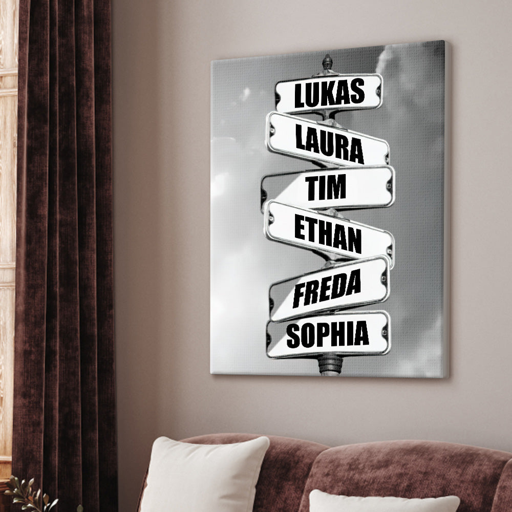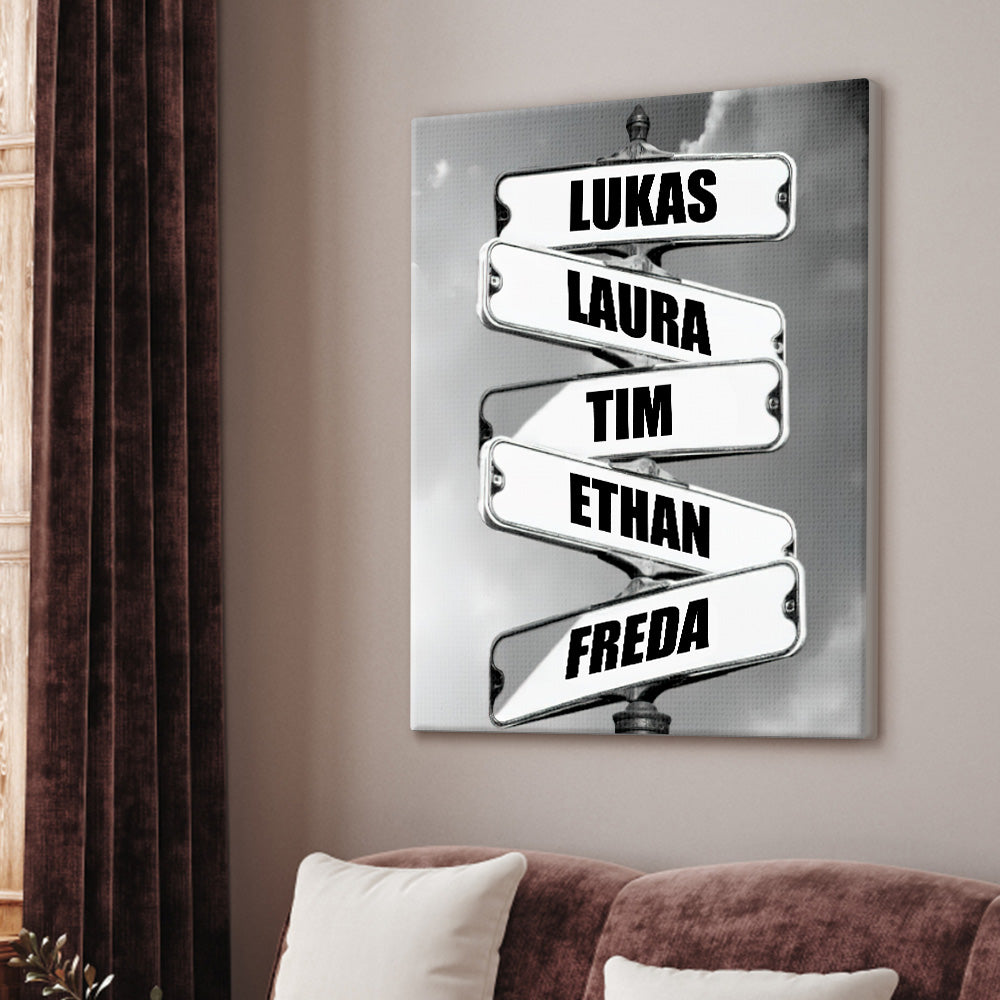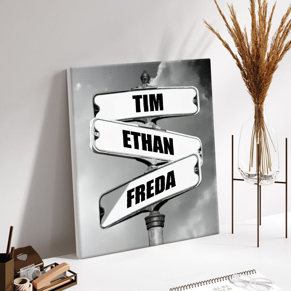 Personalisiertes Familienname Leinwandkreuzung Vintage Straßenschild Jubiläumsgeschenk Für Familien(Canvas Only/DIY Frame)