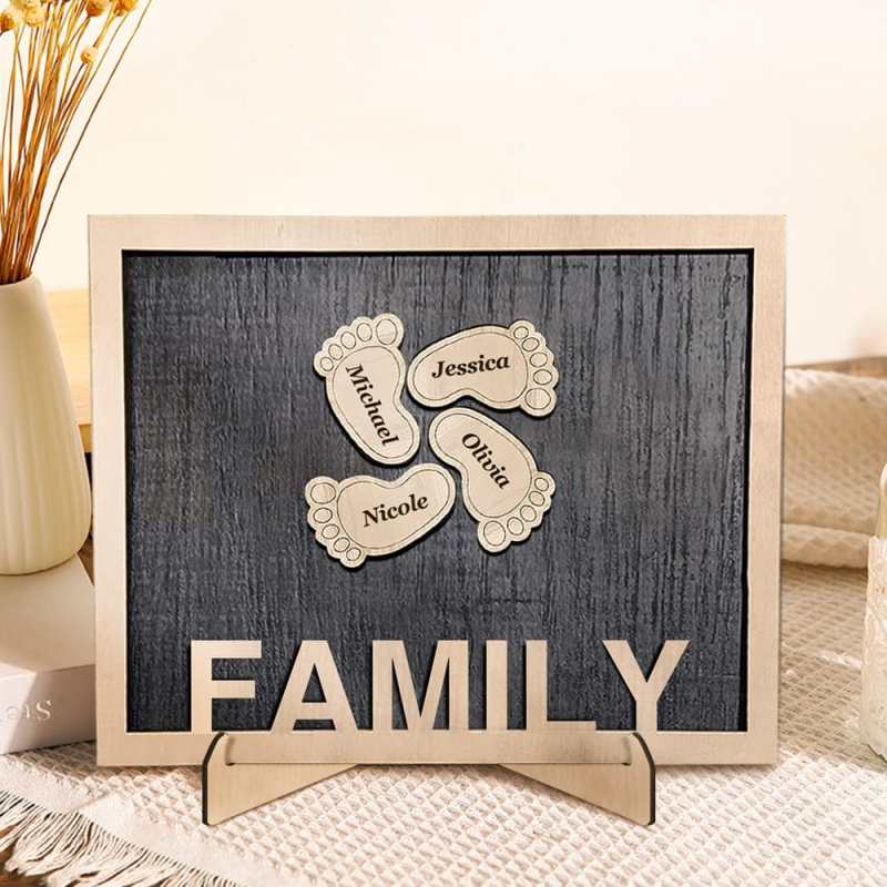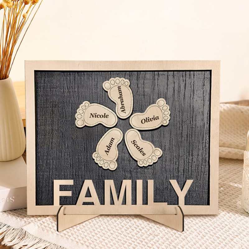 Personalisierte Fußabdruck hölzerne Plaques Dekor Zeichen Familie Namen Desk Plaque Geschenke für die Familie