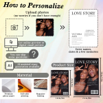 Geben Sie Ihre Liebe in Personalisiertes Pärchenmagazin ein – ein einzigartiges Erinnerungsstück, das Ihre Liebesgeschichte auf die kreativste Weise feiert. Jede Seite wird mit Ihren Fotos, Namen, wichtigen Daten und schönen Momenten gestaltet und in ein stilvolles Magazin-Layout verwandelt, das gleichermaßen fröhlich und herzerwärmend wirkt.