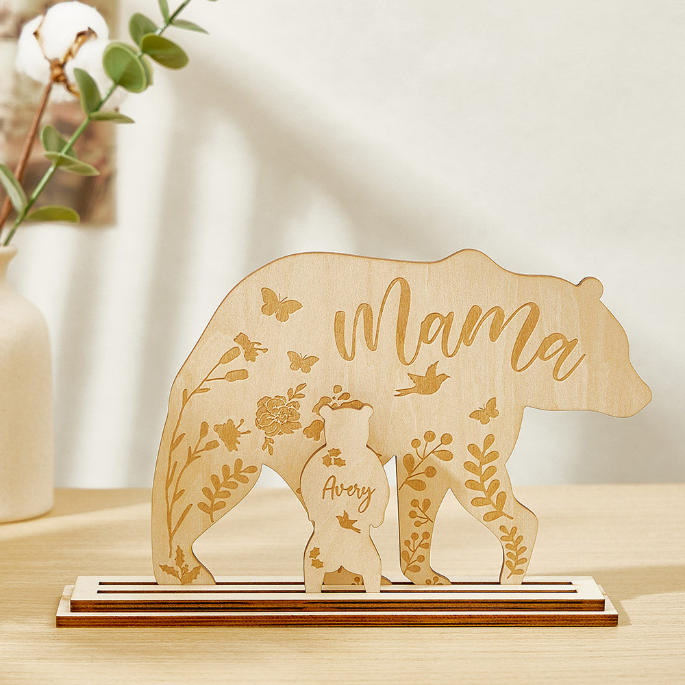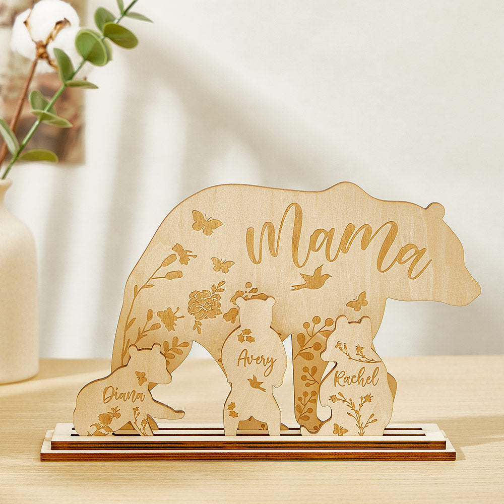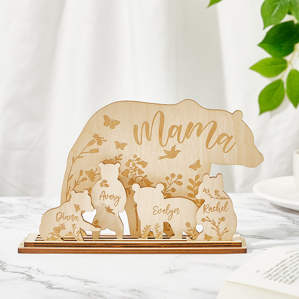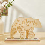 Personalisierter Mama Bär Mit Jungtieren, Holz-schreibtischdekoration, Geschenk Für Mama