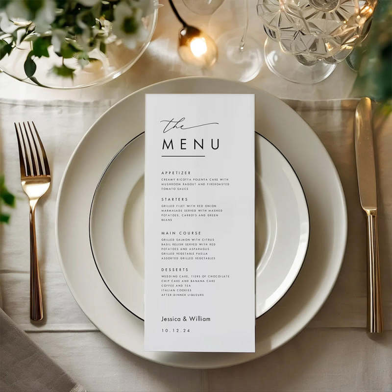 Personalisierte Minimalistische Hochzeitsmenükarte, Hochzeitsmenü