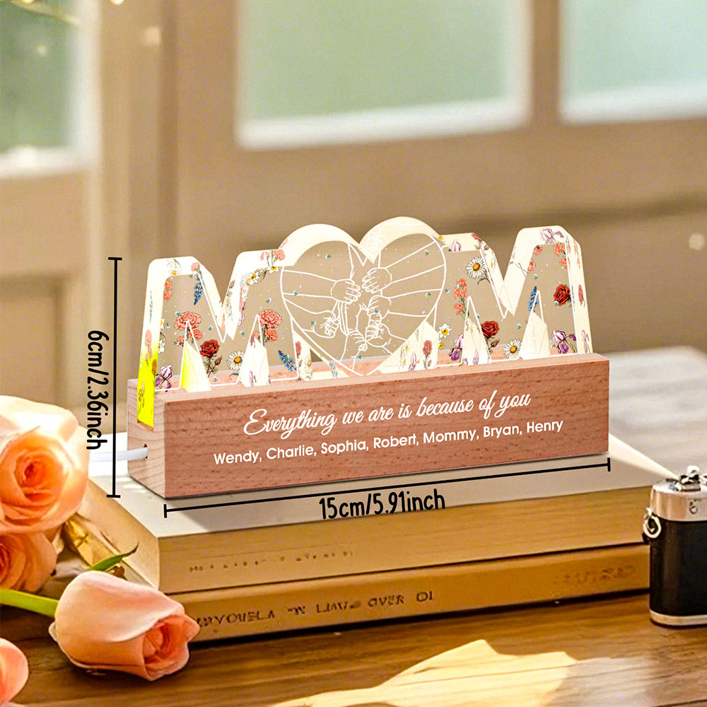 Personalisiertes Led-nachtlicht Für Mama Mit Geburtsblume, Nachtlicht, Muttertagsgeschenk Für Mama