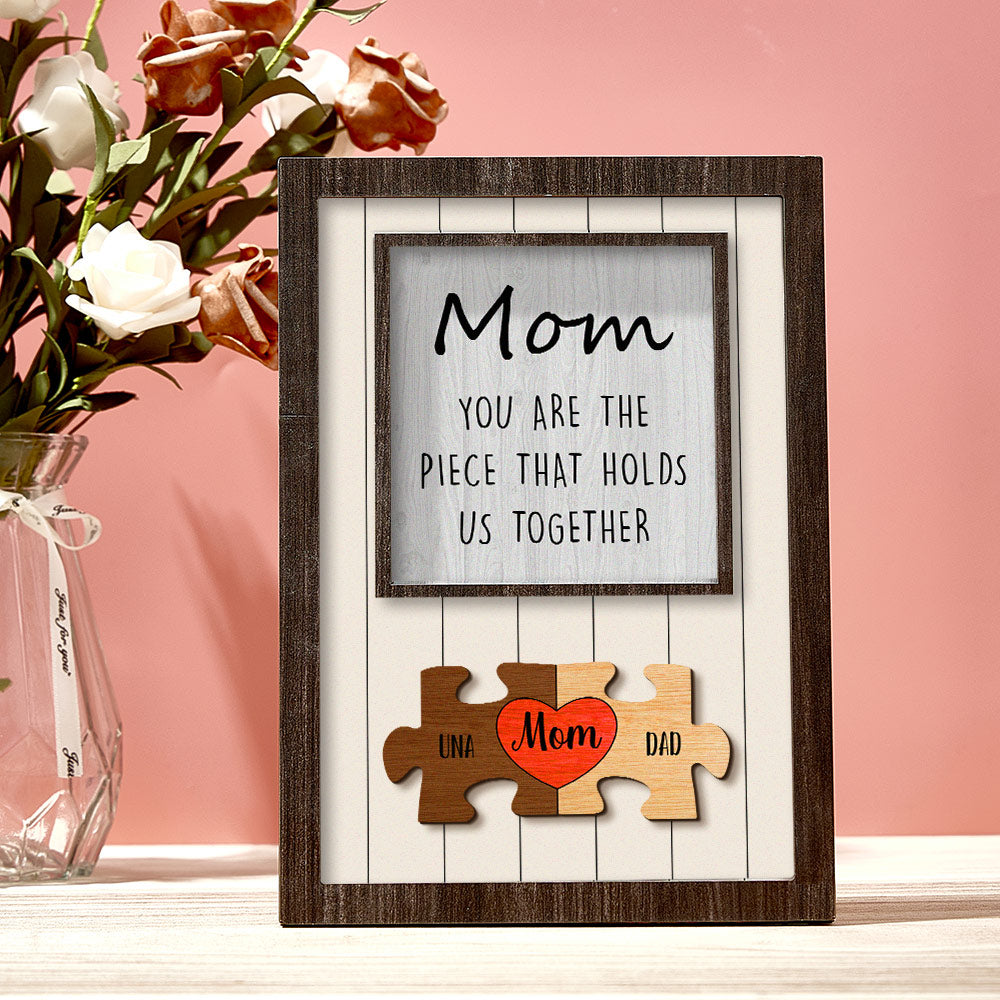 Personalisiertes Mutter-puzzle-schild “Du Bist Das Stück, Das Uns Zusammenhält“ Personalisiertes Familienmitglied-puzzle-schild, Muttertagsgeschenk