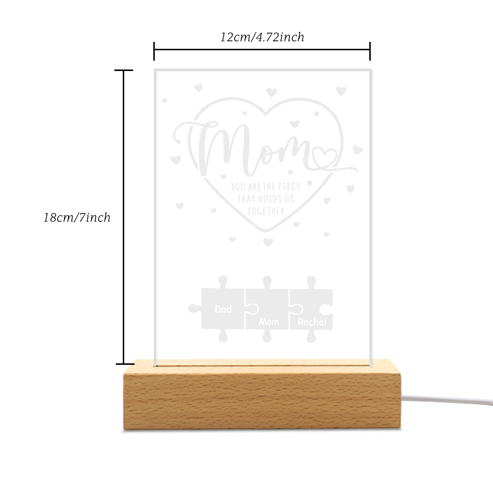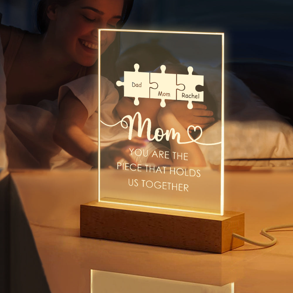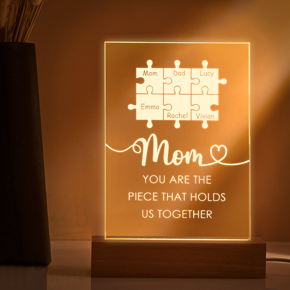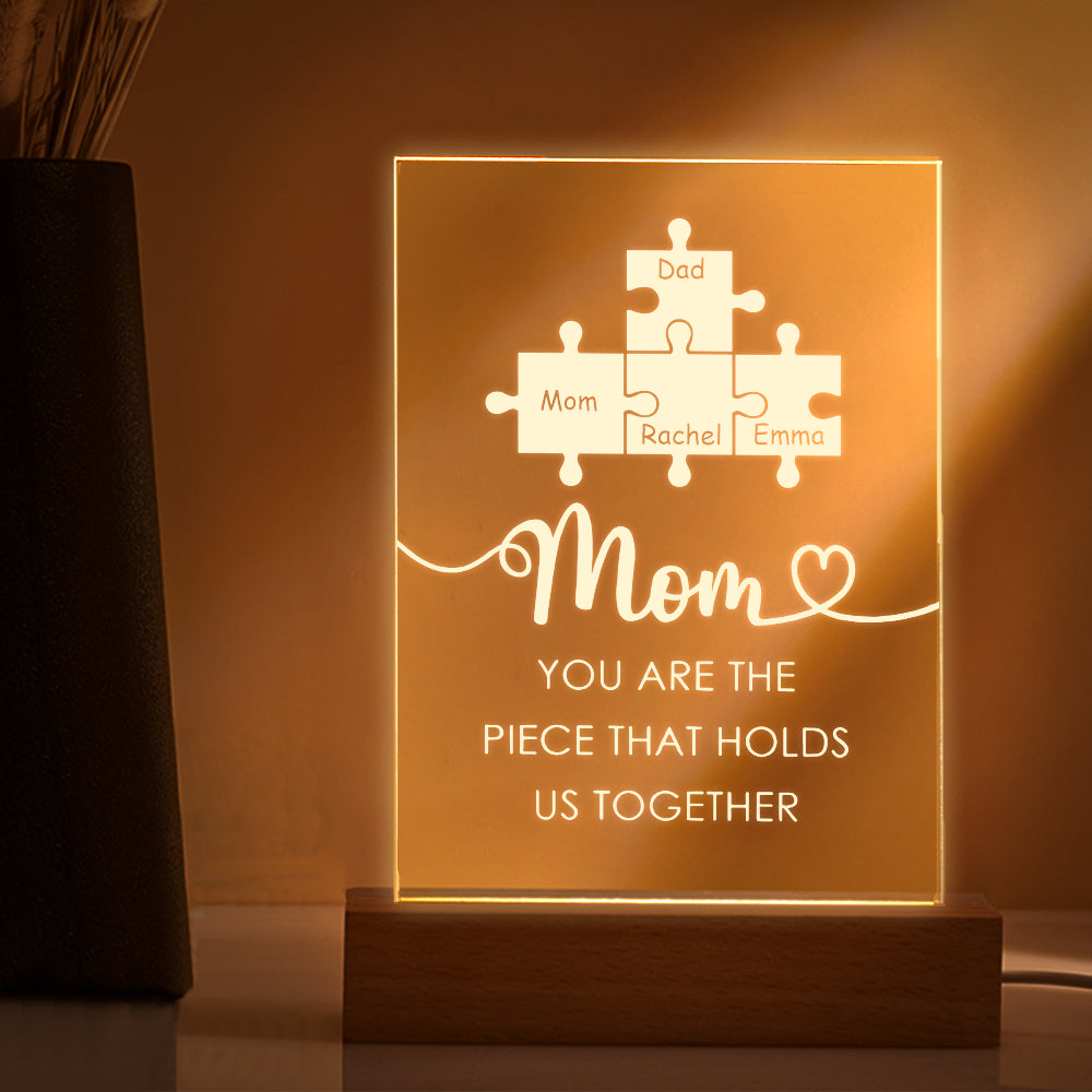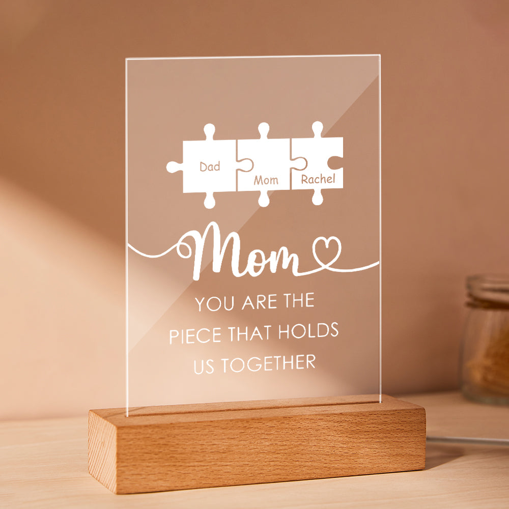 Personalisierte Mama Du Bist Das Stück Das Uns Zusammenhält Acryl-nachtlicht-geschenk Für Mama