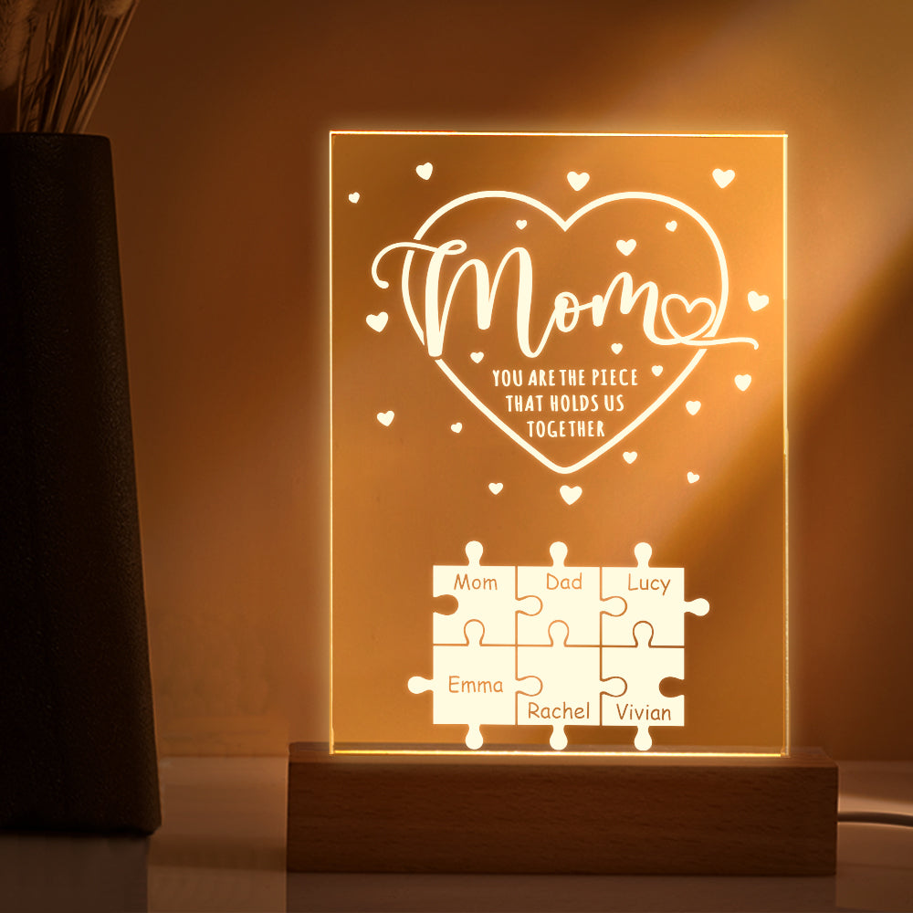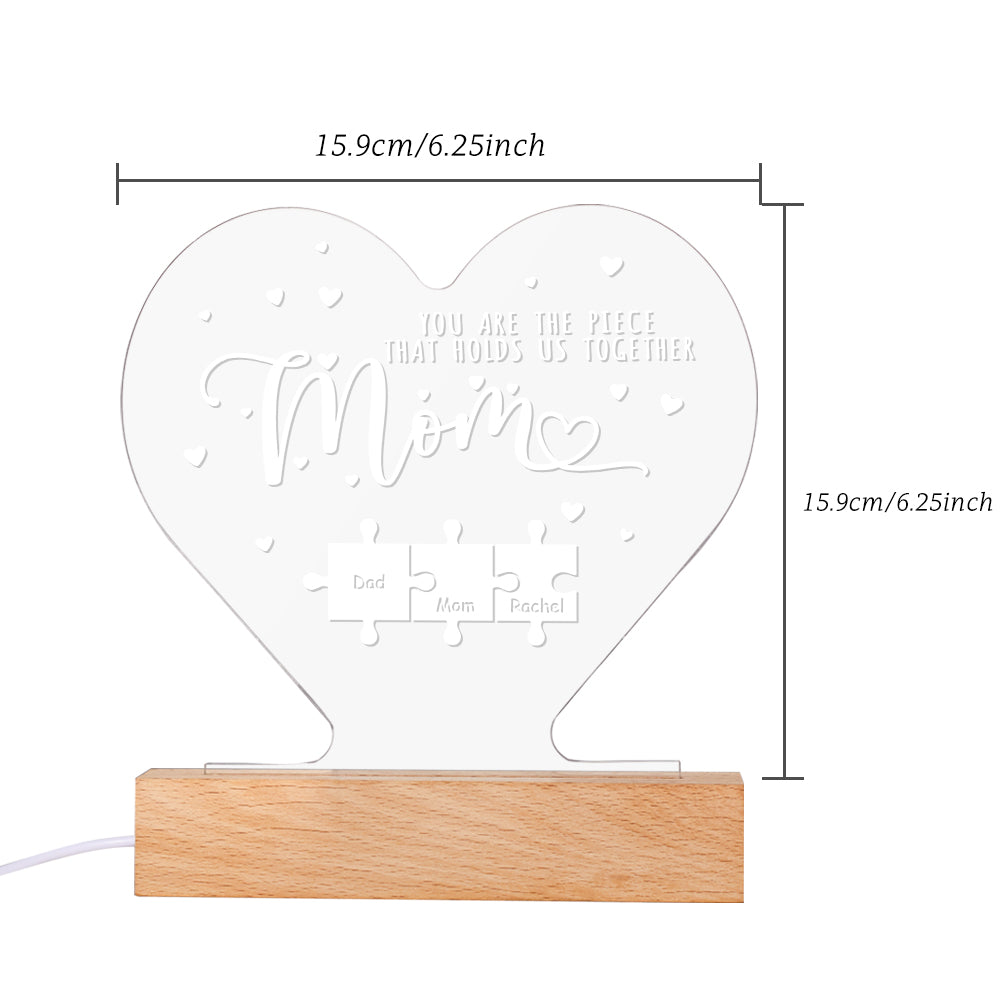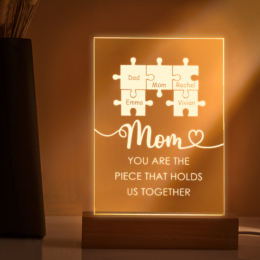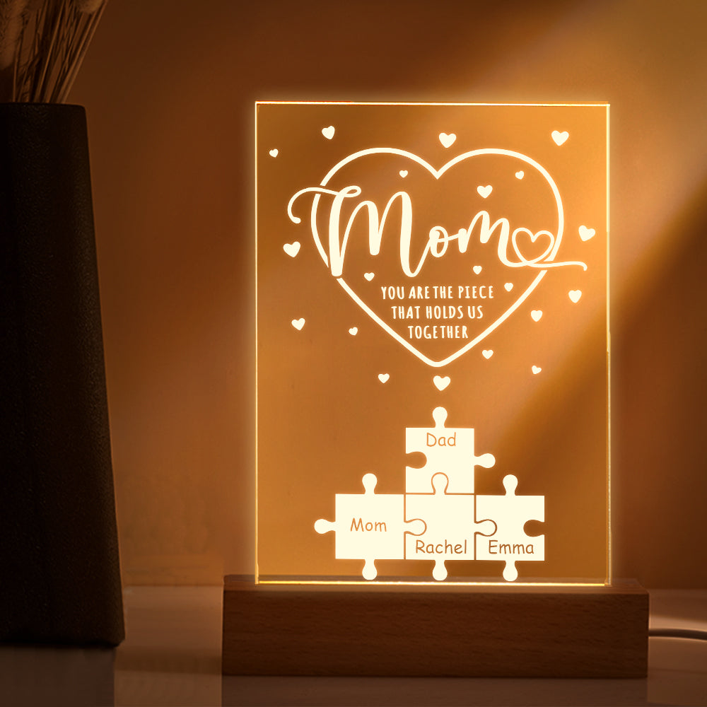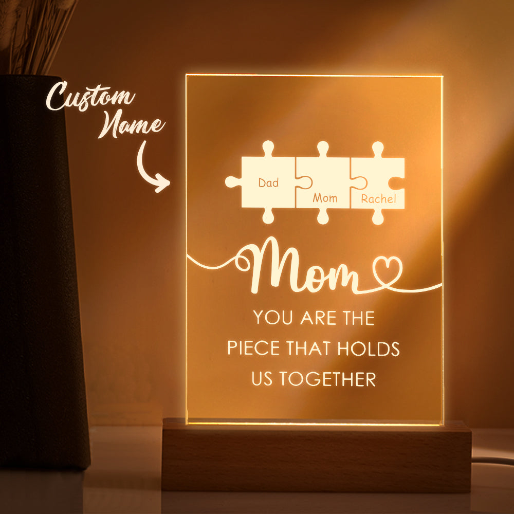 Personalisierte Mama Du Bist Das Stück Das Uns Zusammenhält Acryl-nachtlicht-geschenk Für Mama