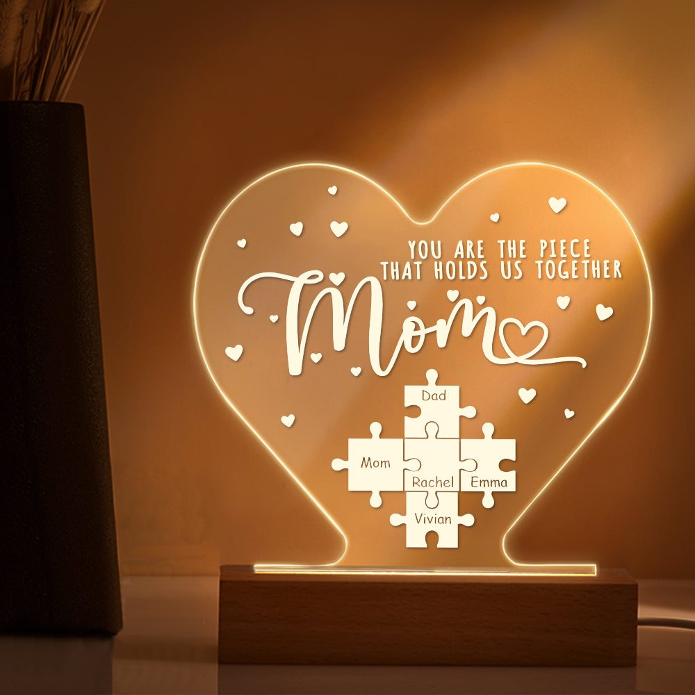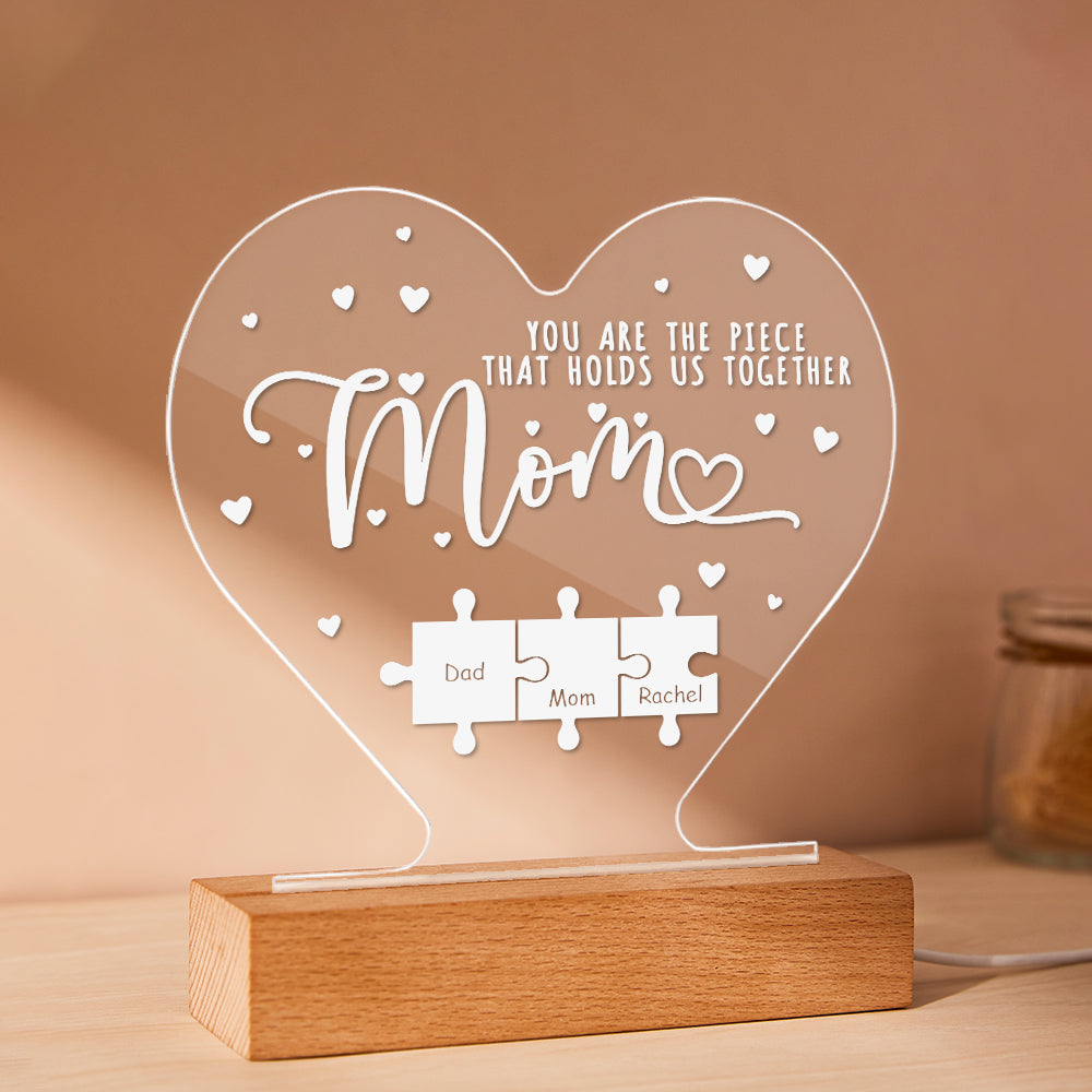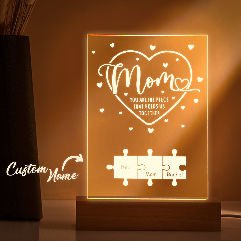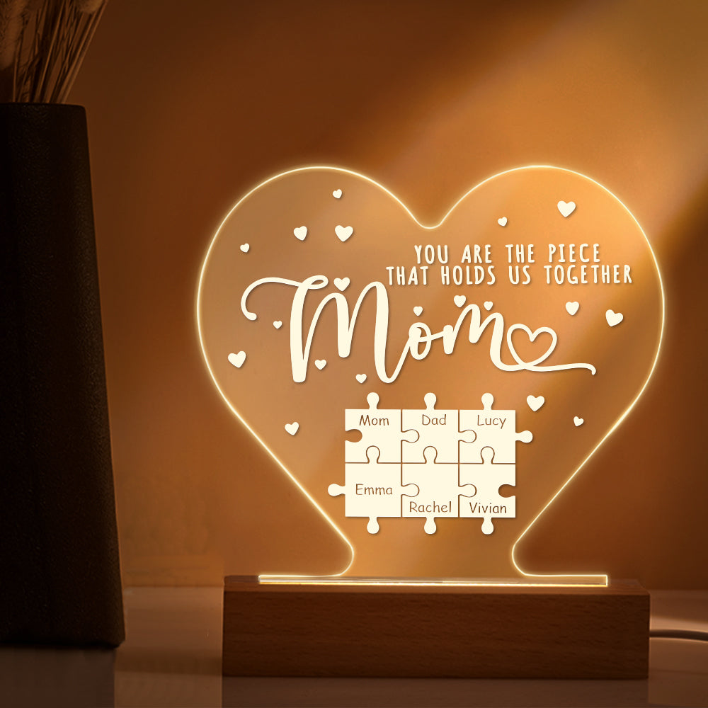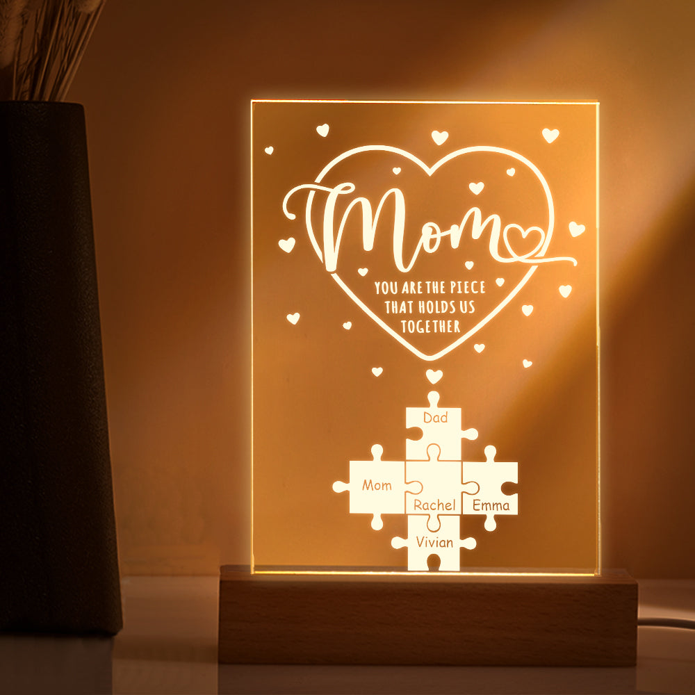 Personalisierte Mama Du Bist Das Stück Das Uns Zusammenhält Acryl-nachtlicht-geschenk Für Mama