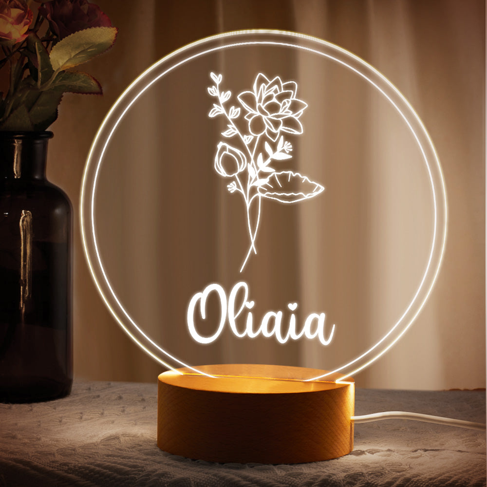 Personalisierte Namens-geburtsblumen-nachtlicht-geschenke Aus Acryl Zum Muttertag