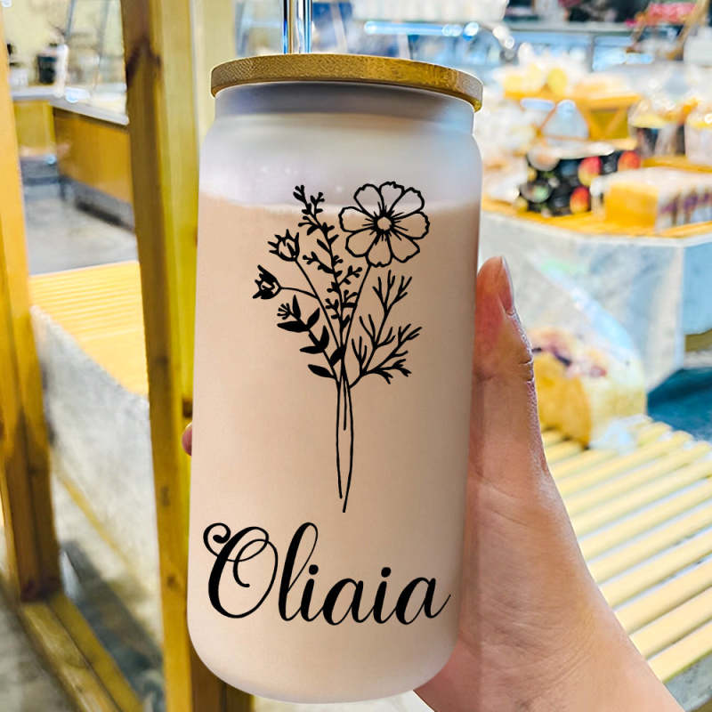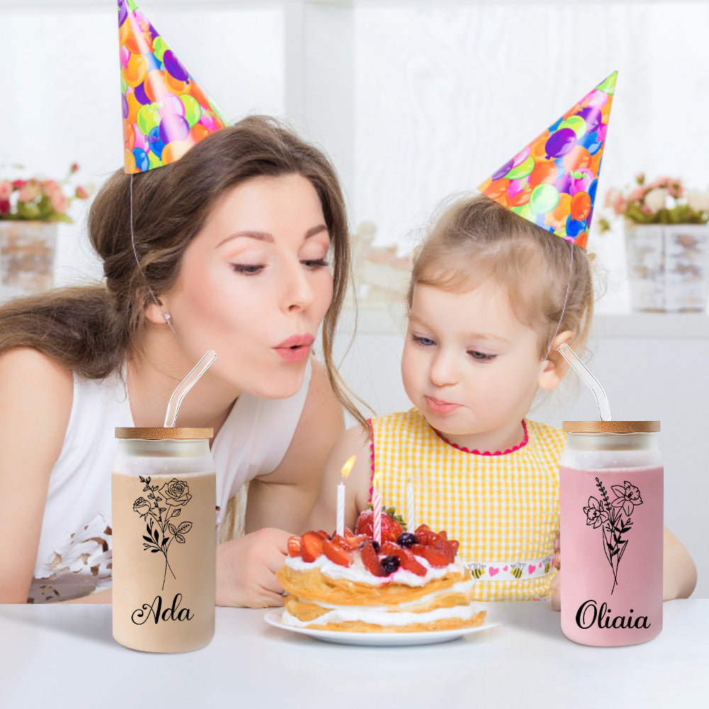 Personalisiertes Milchdosenglas mit Namen und Geburtsblume, Geschenk für Mutter, Familie