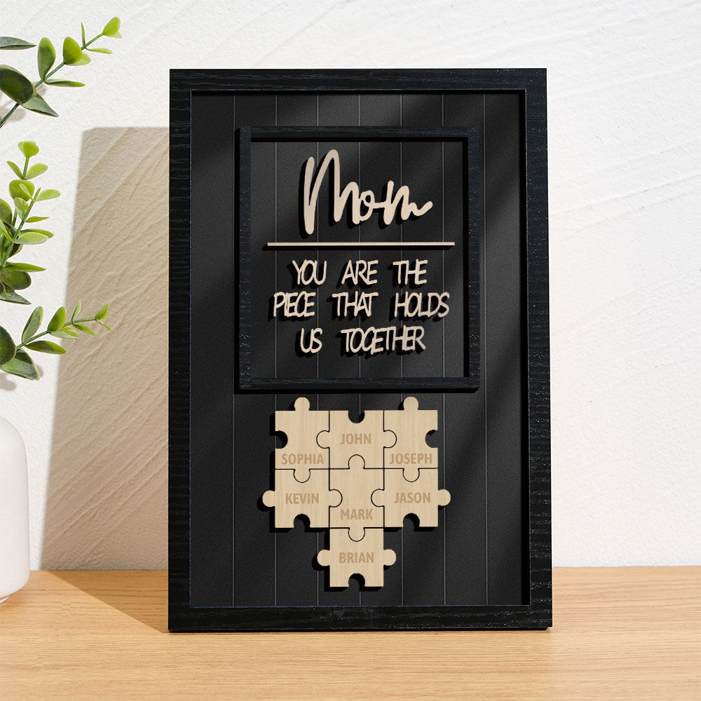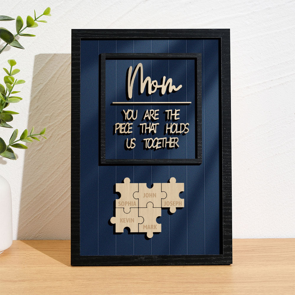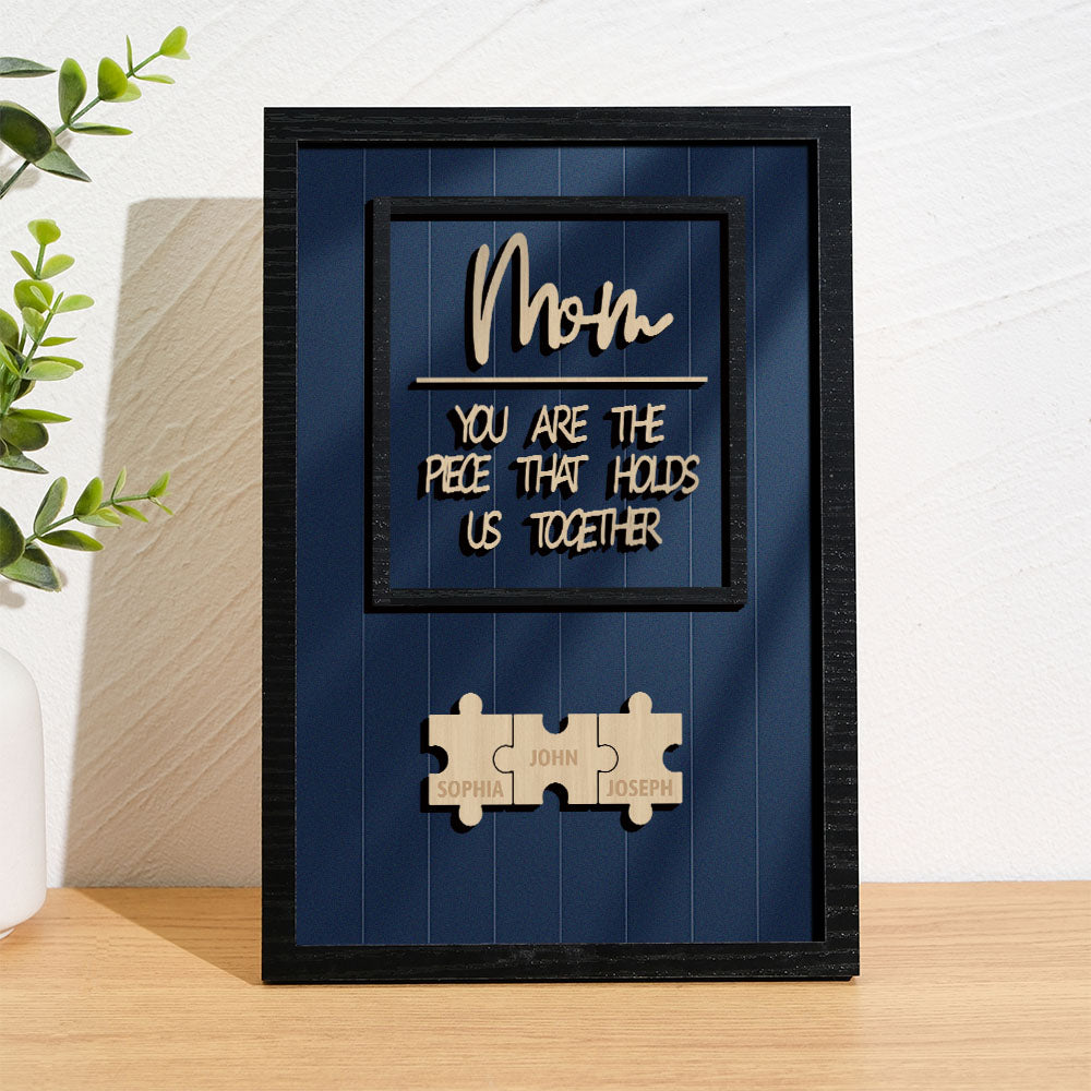 Personalisiertes Namens-mom-puzzle-holzrahmenschild “Du Bist Das Stück, Das Uns Zusammenhält“