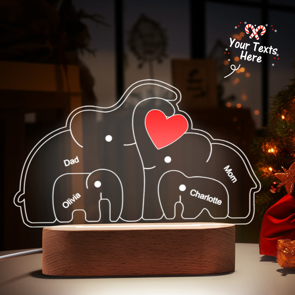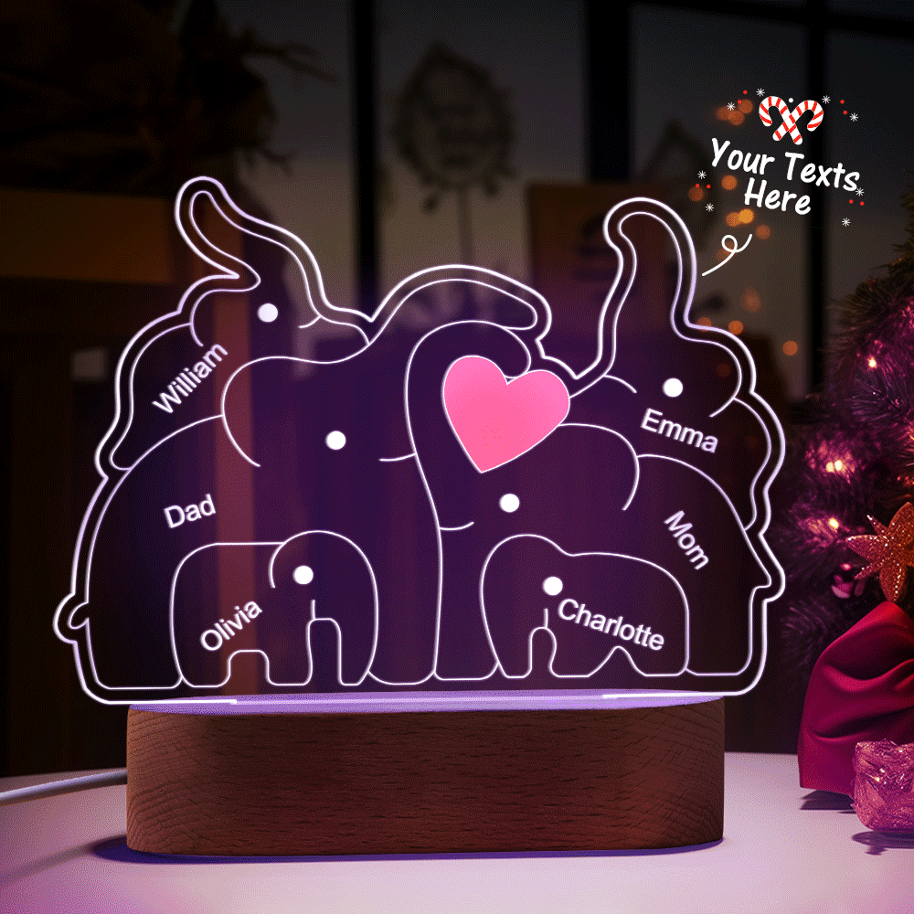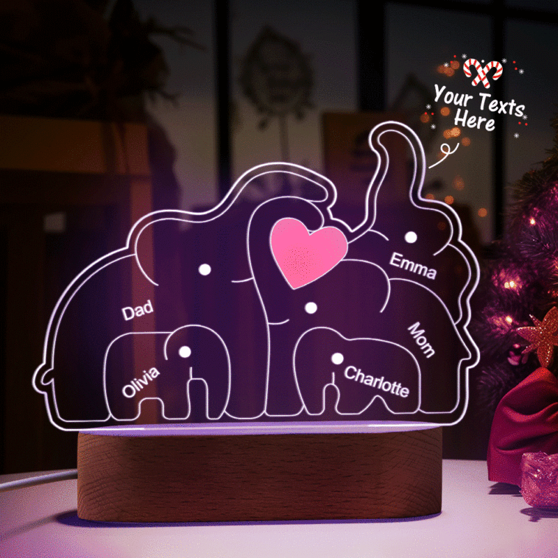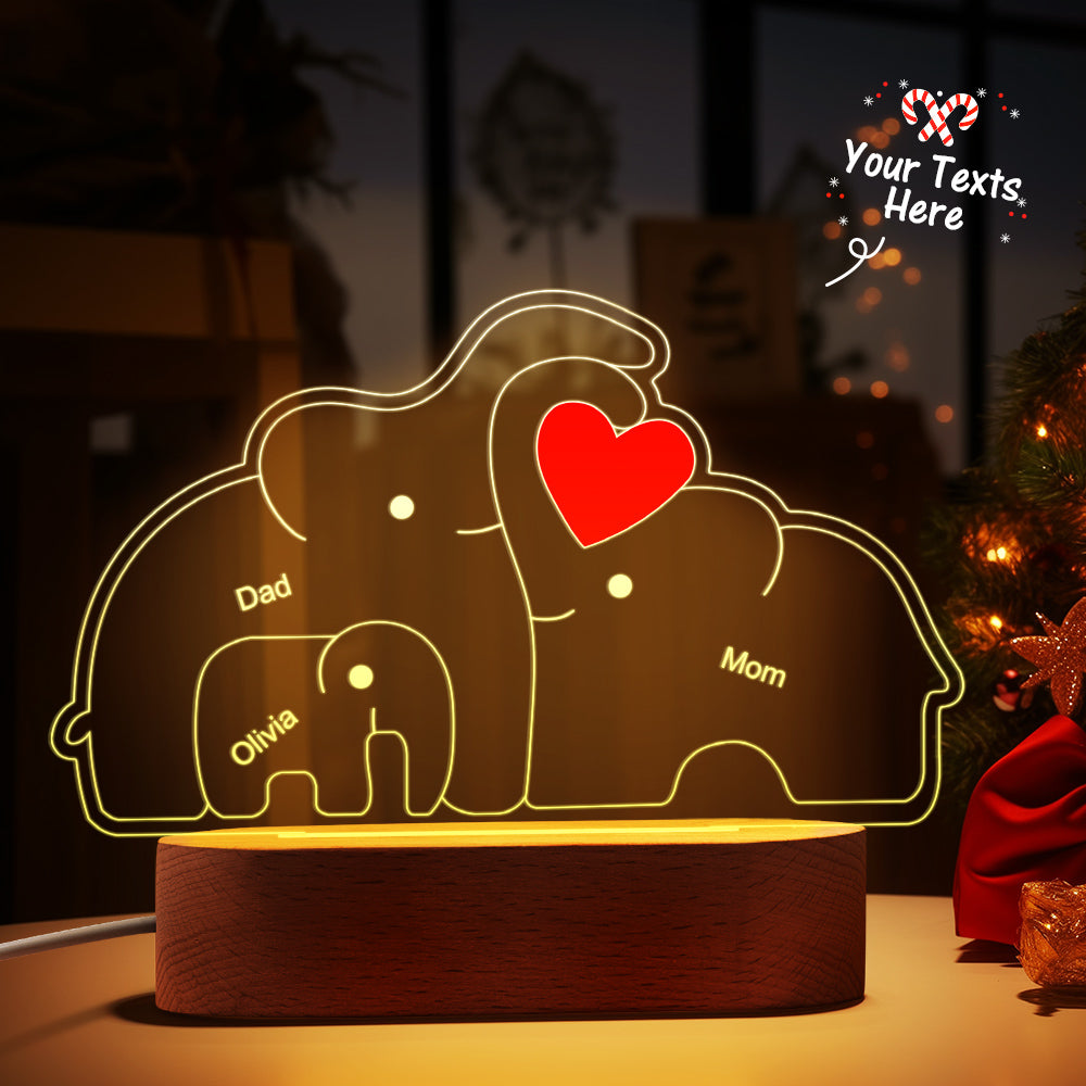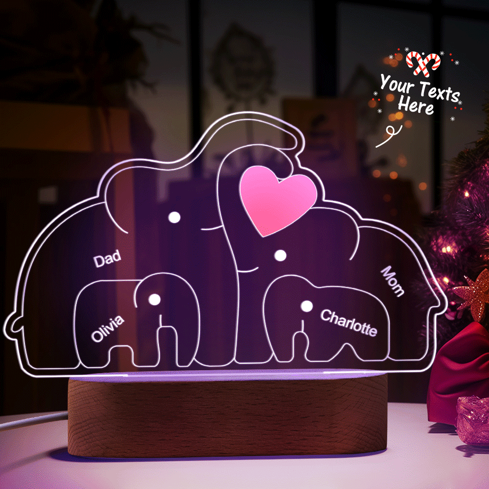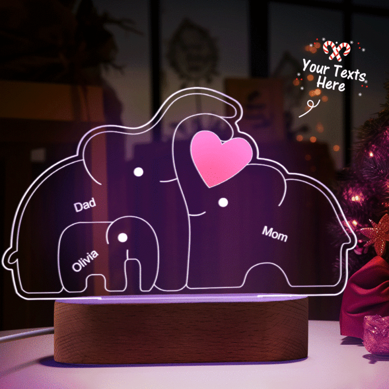 Personalisierte Namen, Elefantenfamilie, Acryllampe, Individuelles Nachtlicht, Bestes Weihnachtsgeschenk