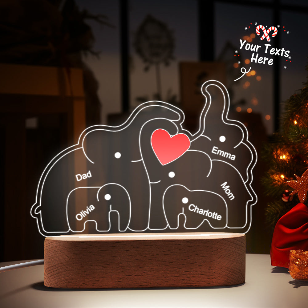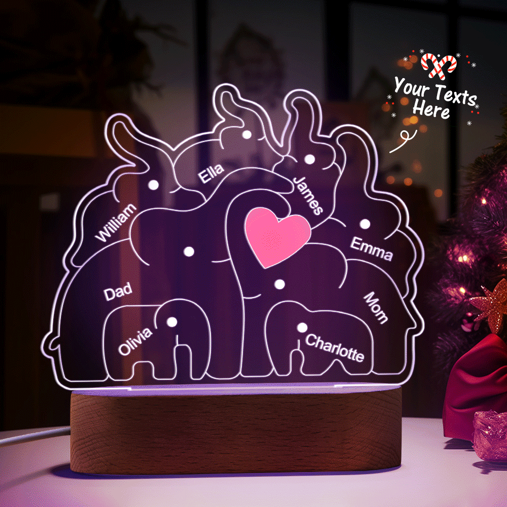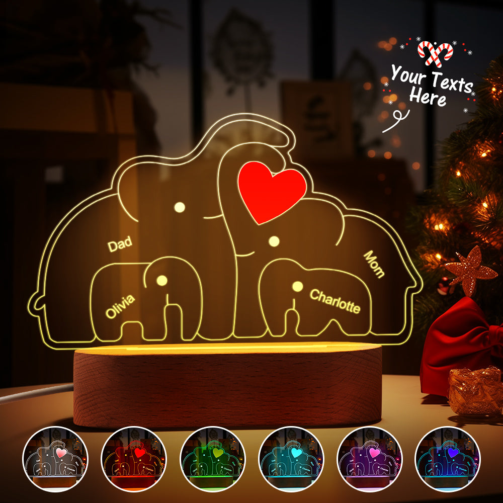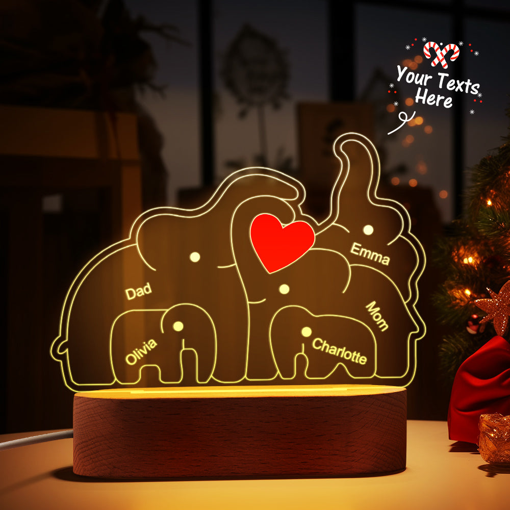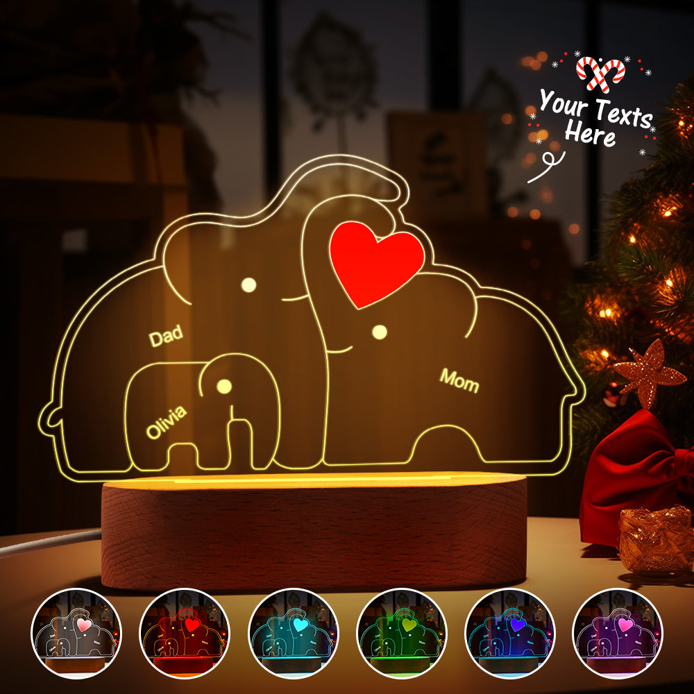 Personalisierte Namen, Elefantenfamilie, Acryllampe, Individuelles Nachtlicht, Bestes Weihnachtsgeschenk