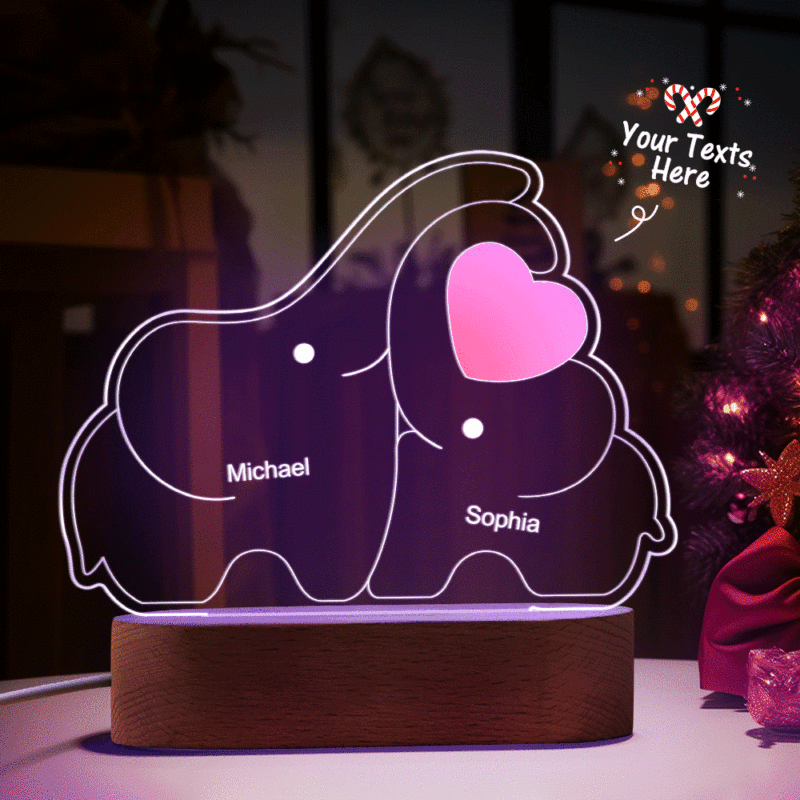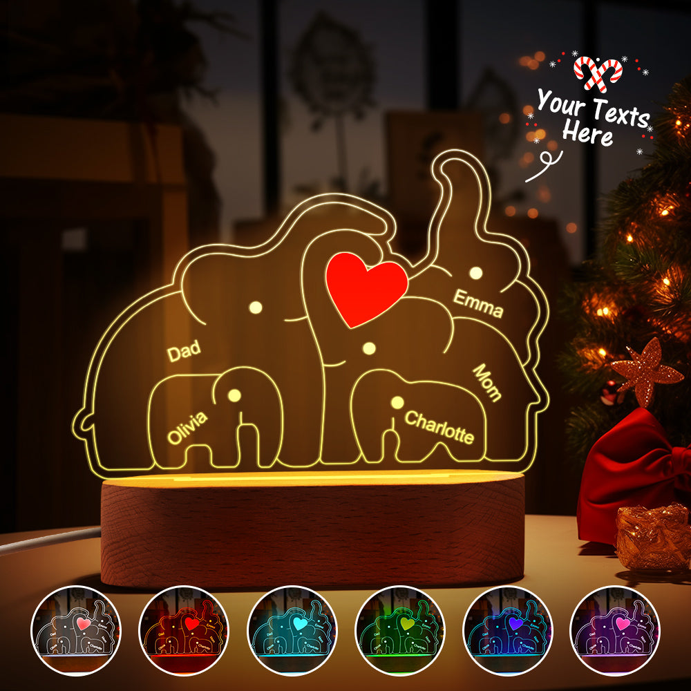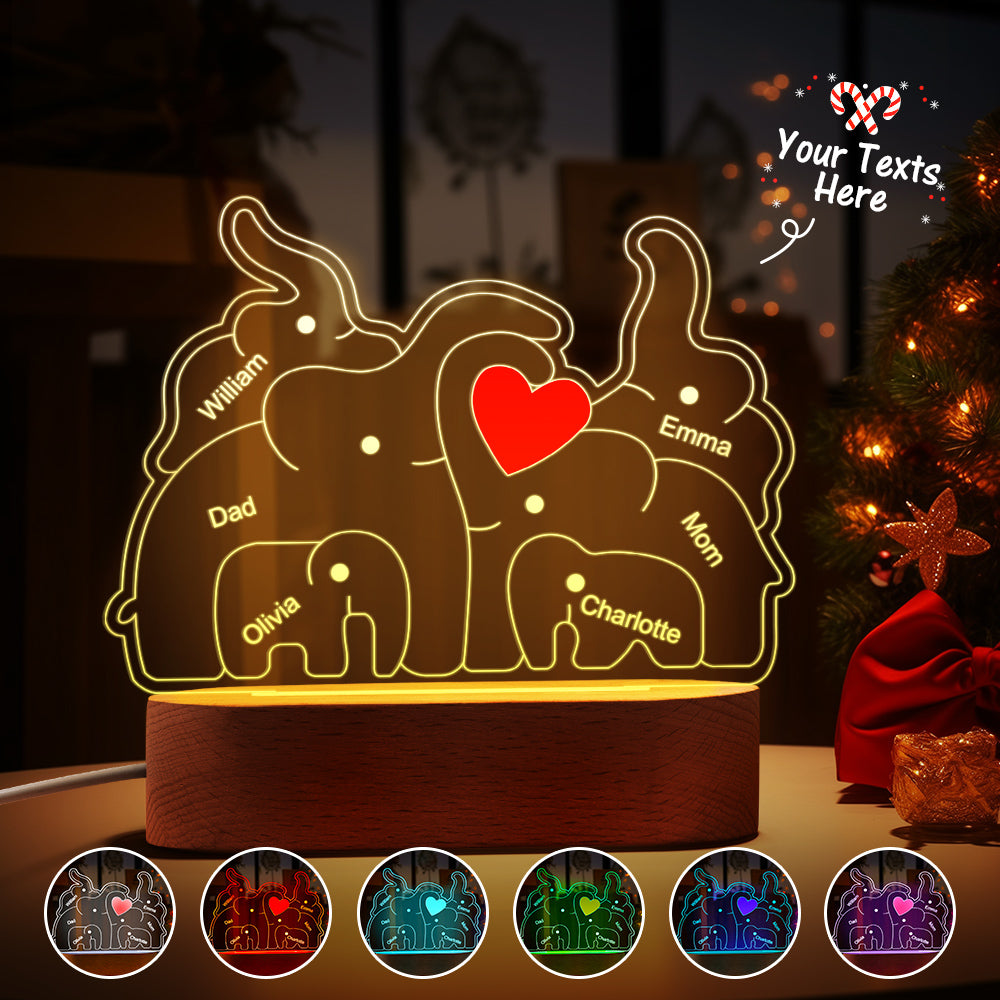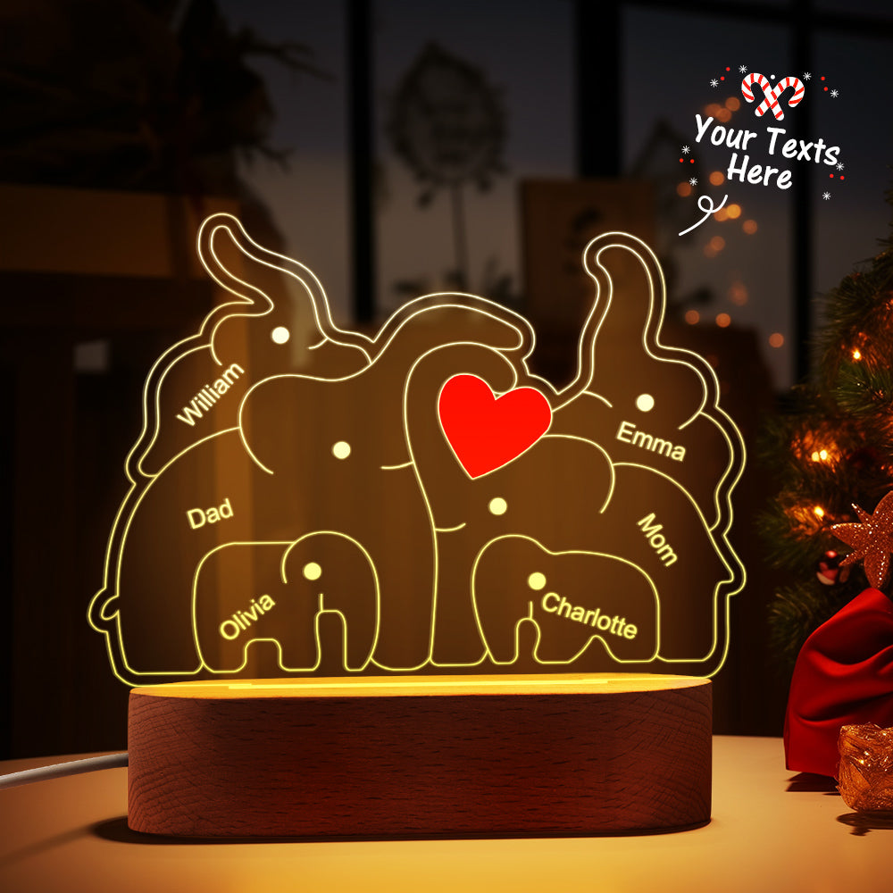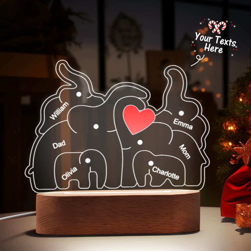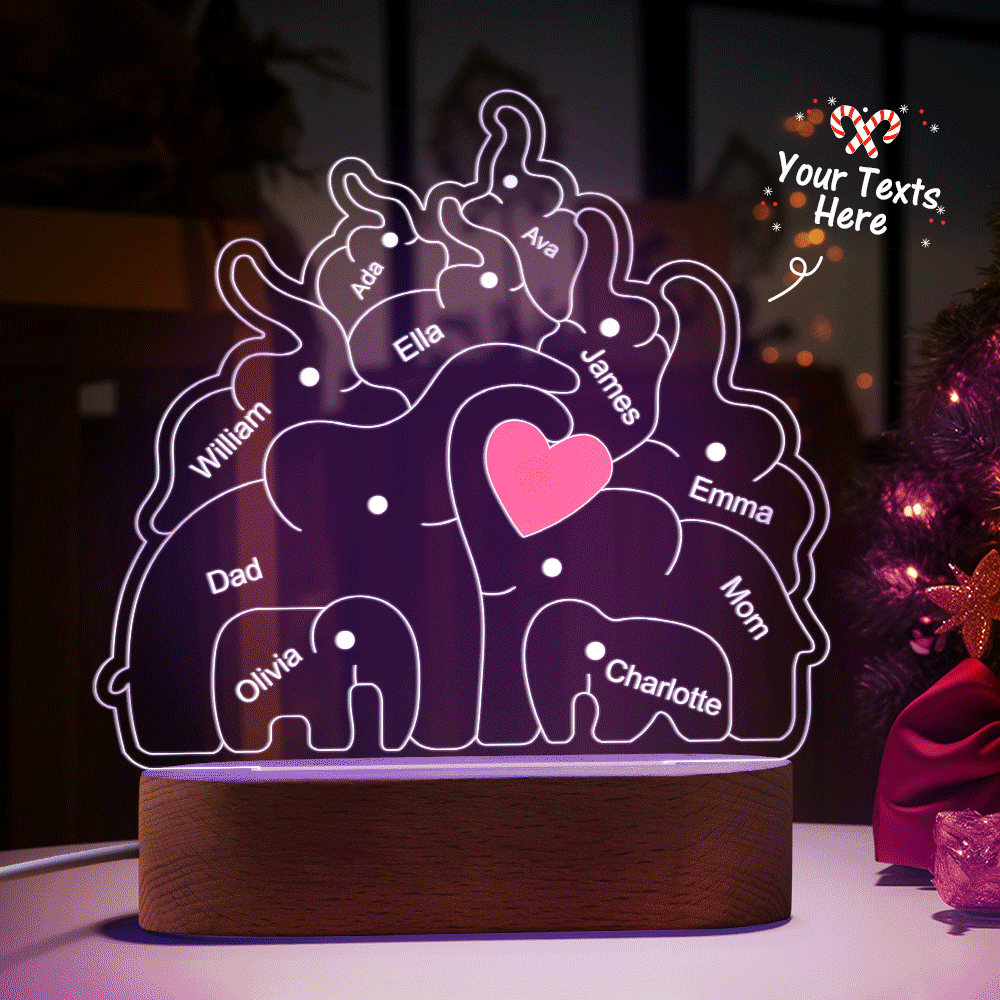 Personalisierte Namen, Elefantenfamilie, Acryllampe, Individuelles Nachtlicht, Bestes Weihnachtsgeschenk
