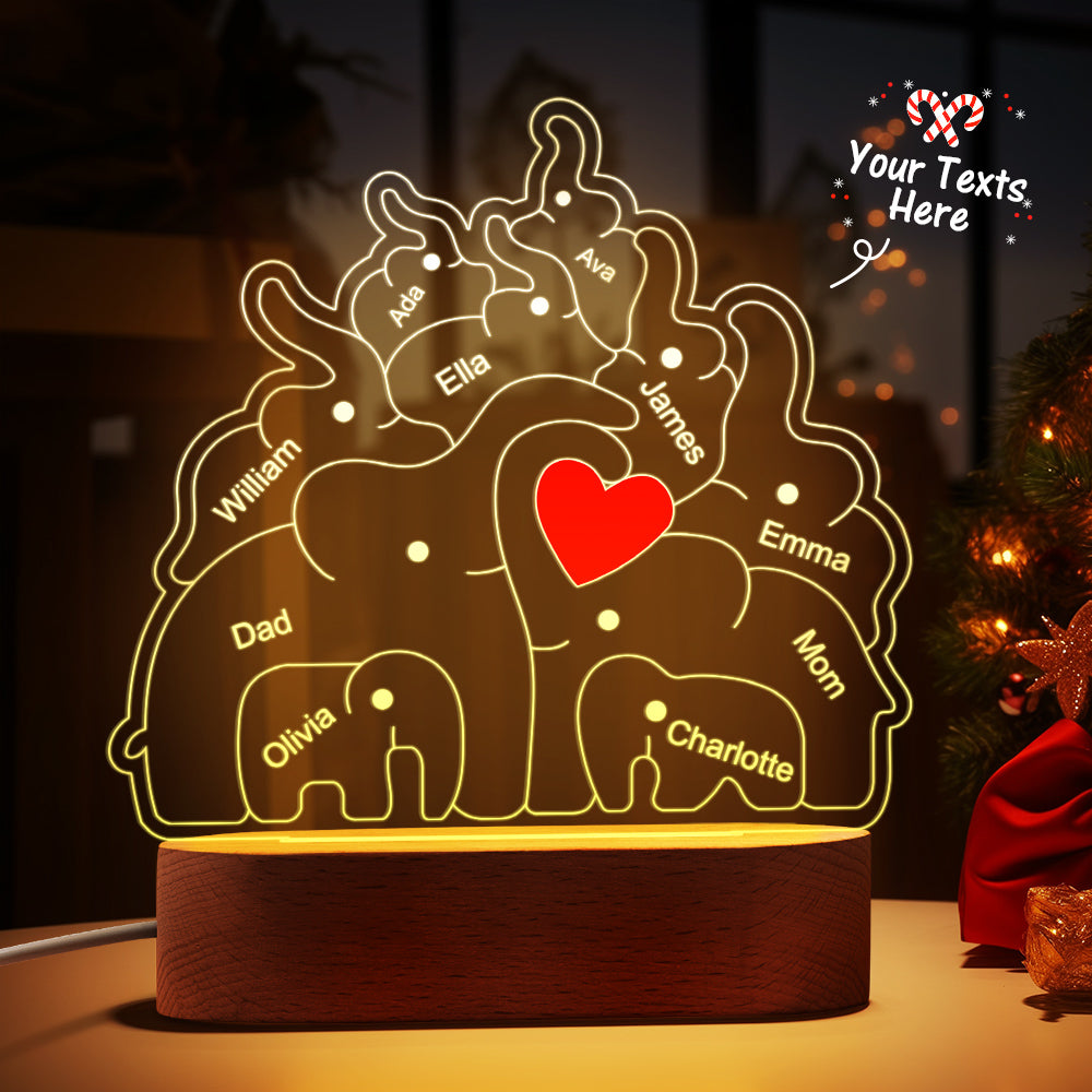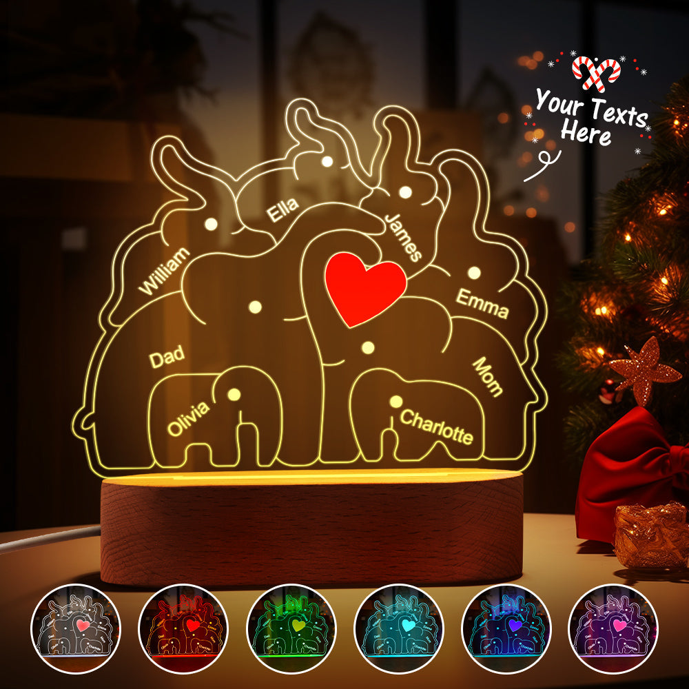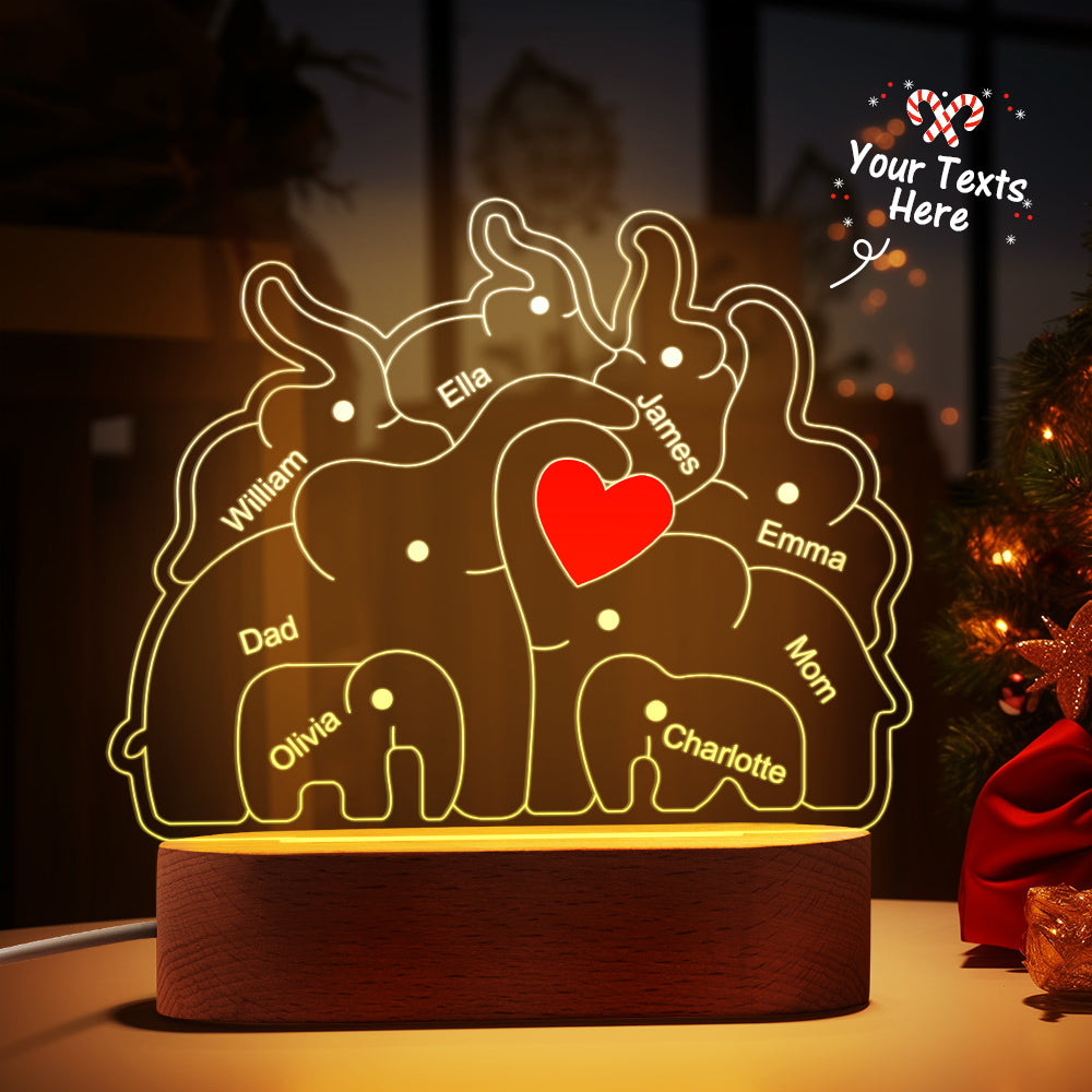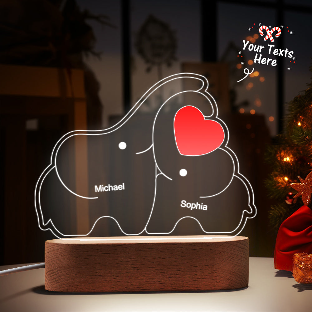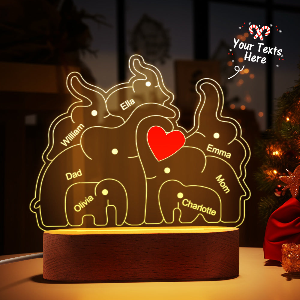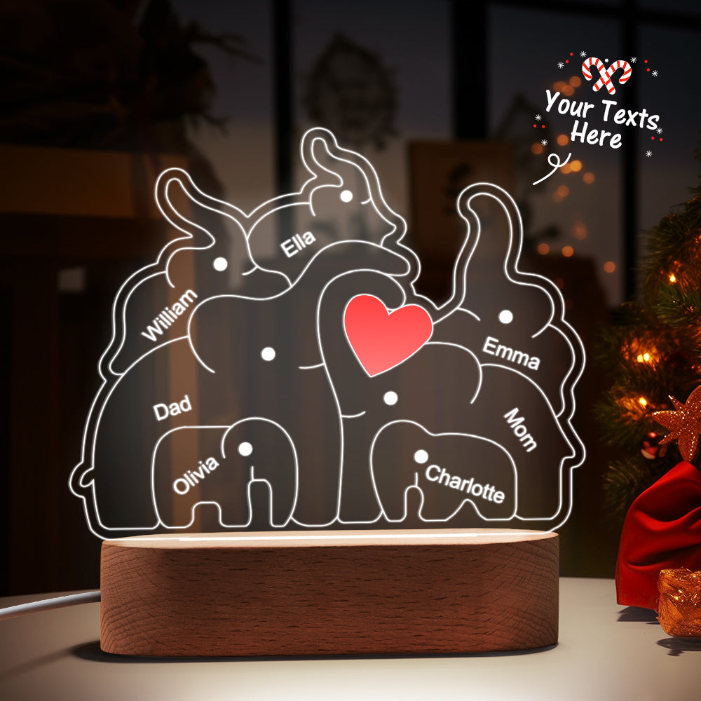 Personalisierte Namen, Elefantenfamilie, Acryllampe, Individuelles Nachtlicht, Bestes Weihnachtsgeschenk