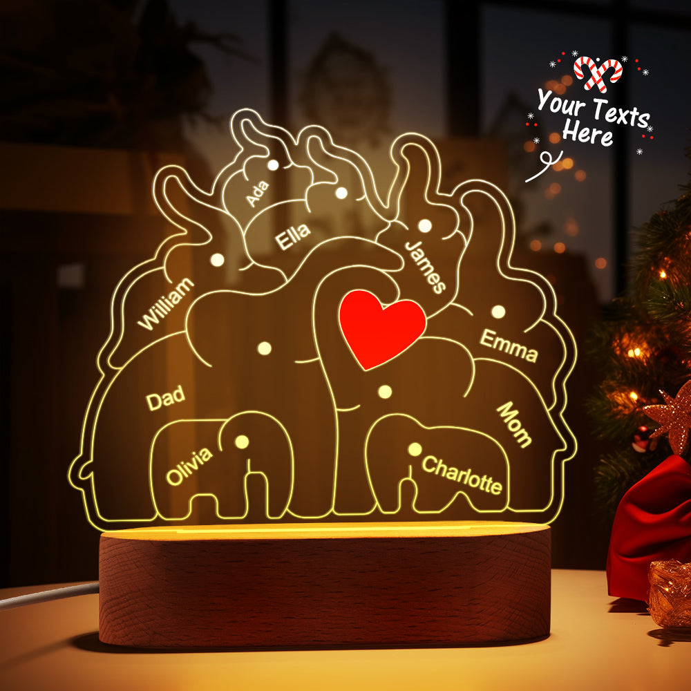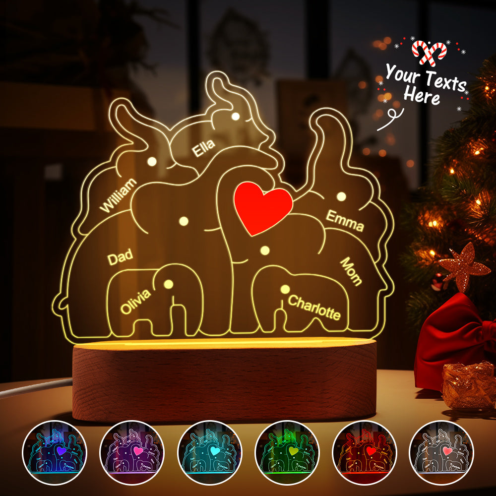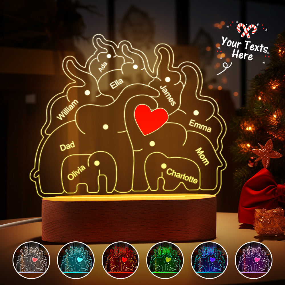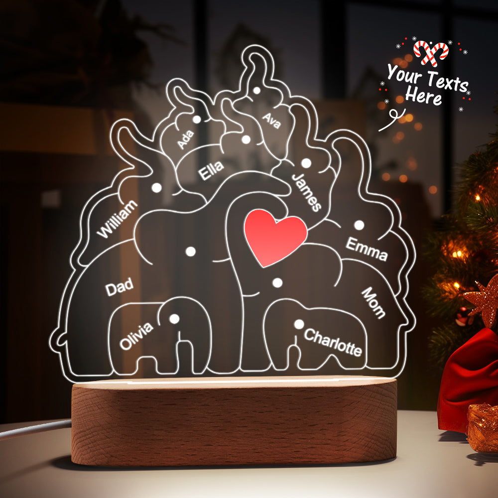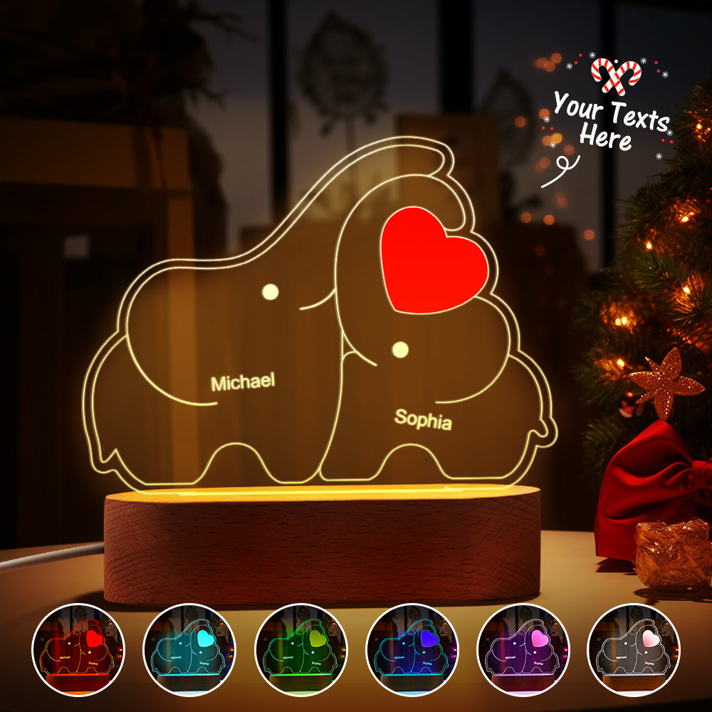 Personalisierte Namen, Elefantenfamilie, Acryllampe, Individuelles Nachtlicht, Bestes Weihnachtsgeschenk
