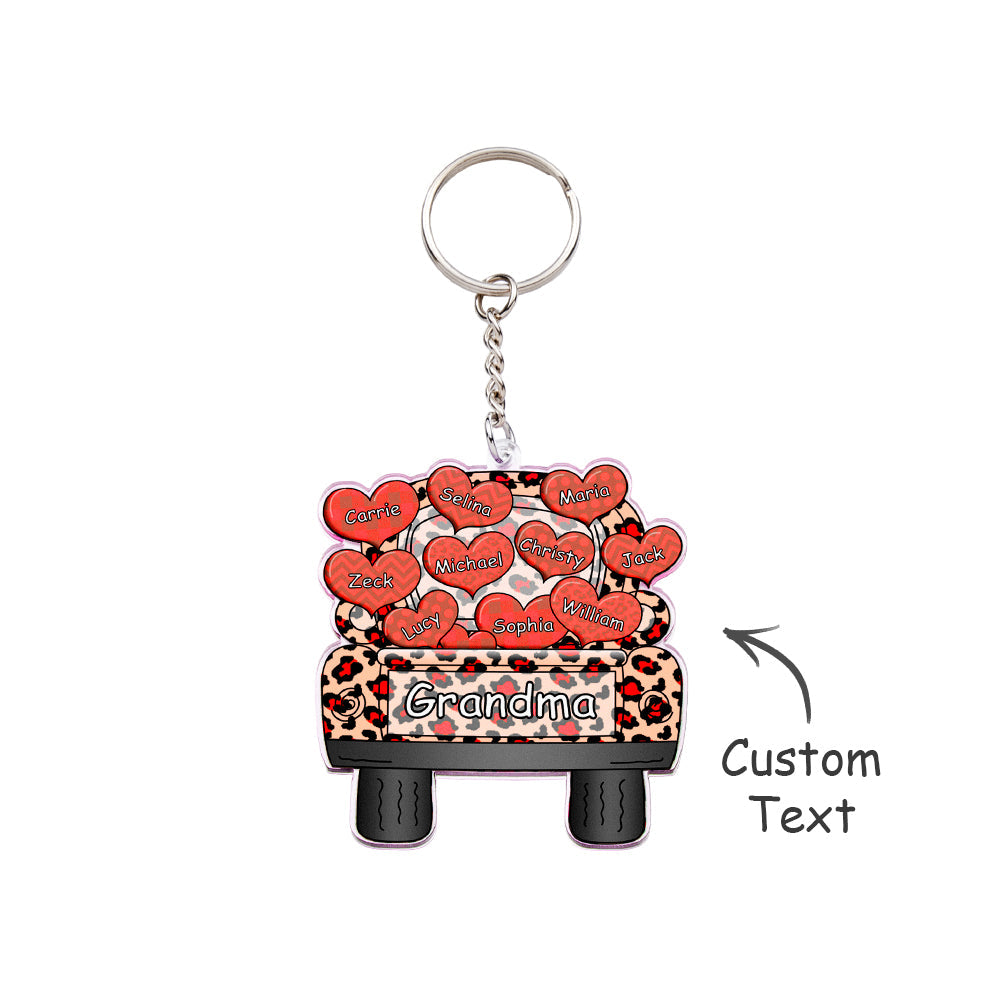 Personalisierter Spitzname Truck Loading Herz Acryl Schlüsselanhänger Weihnachtsgeschenk Dekor Geschenk Oma Nana Papa