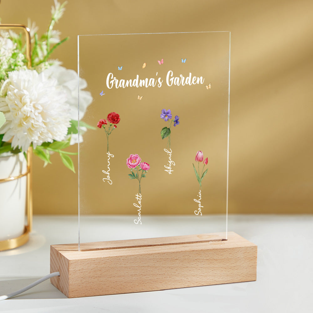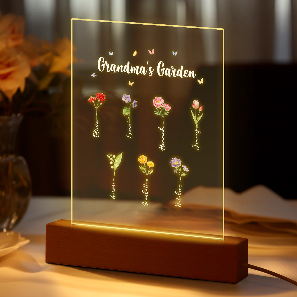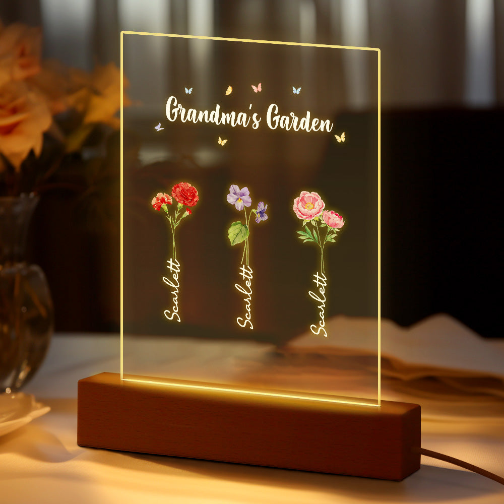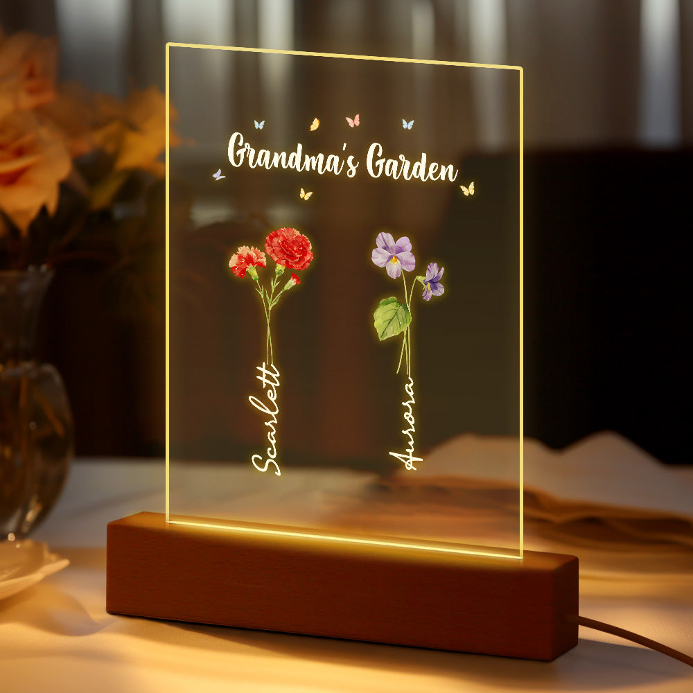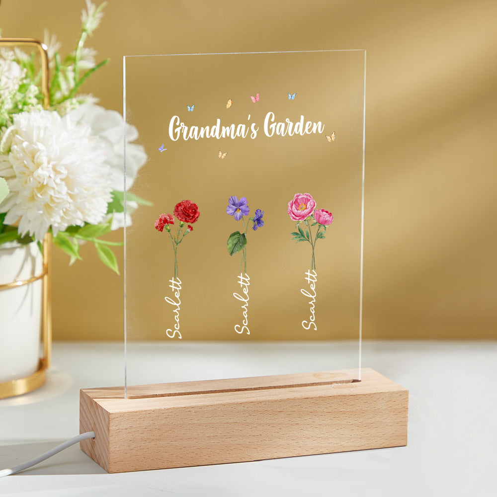 Personalisiertes Nachtlicht, Omas Garten, Geburtsmonat, Blumengeschenk