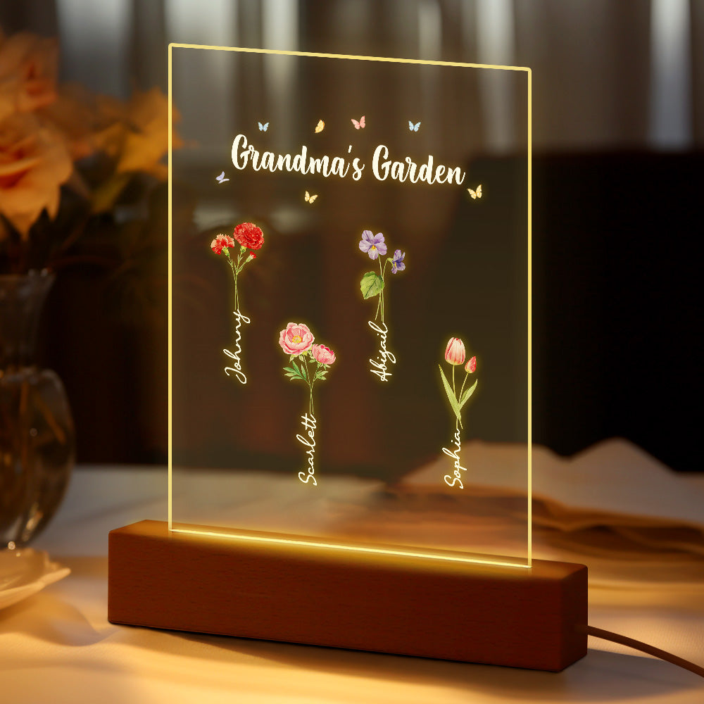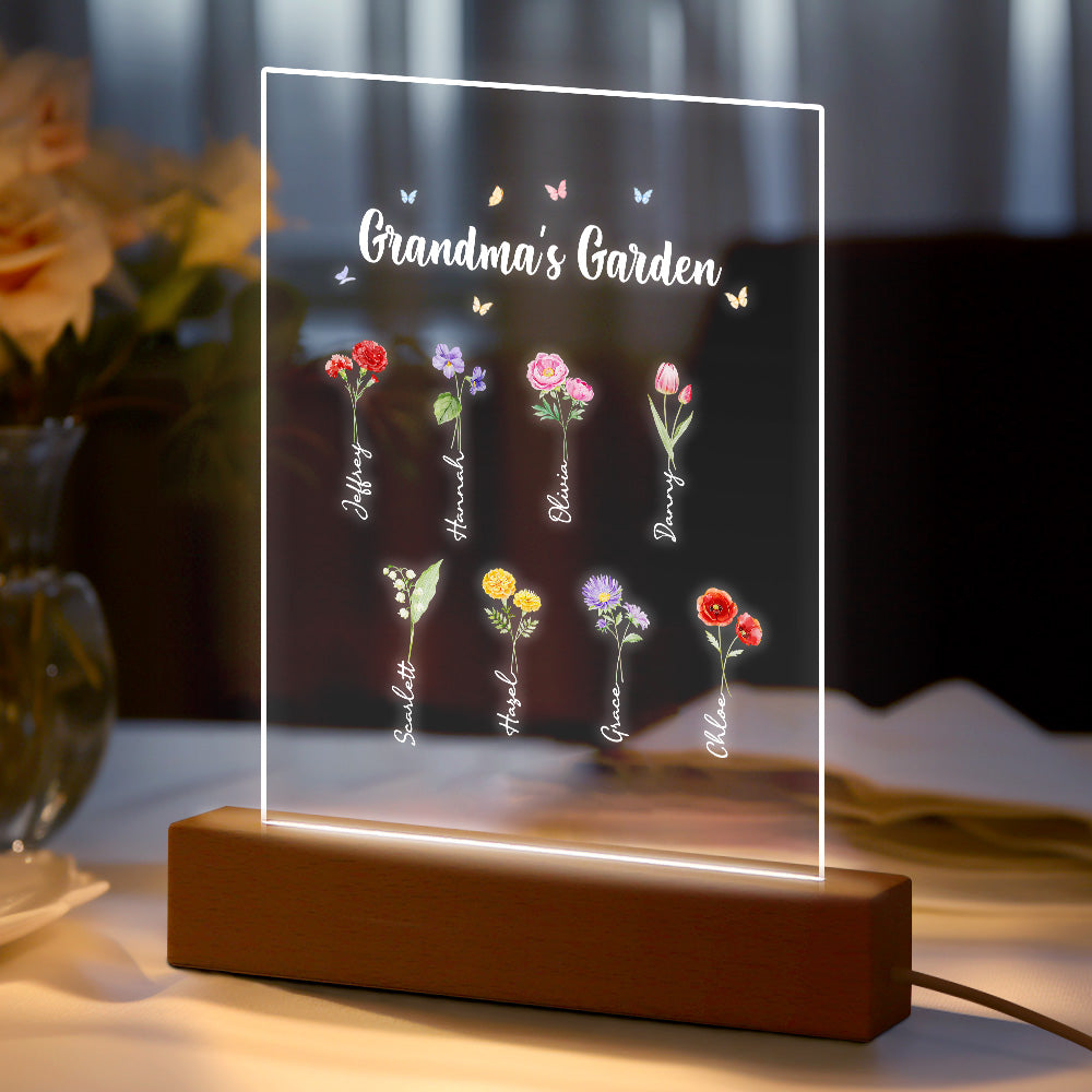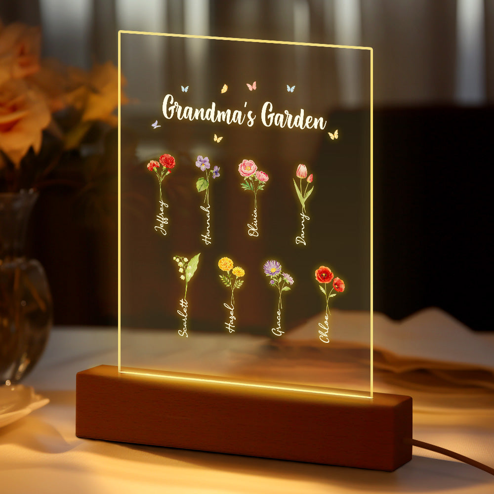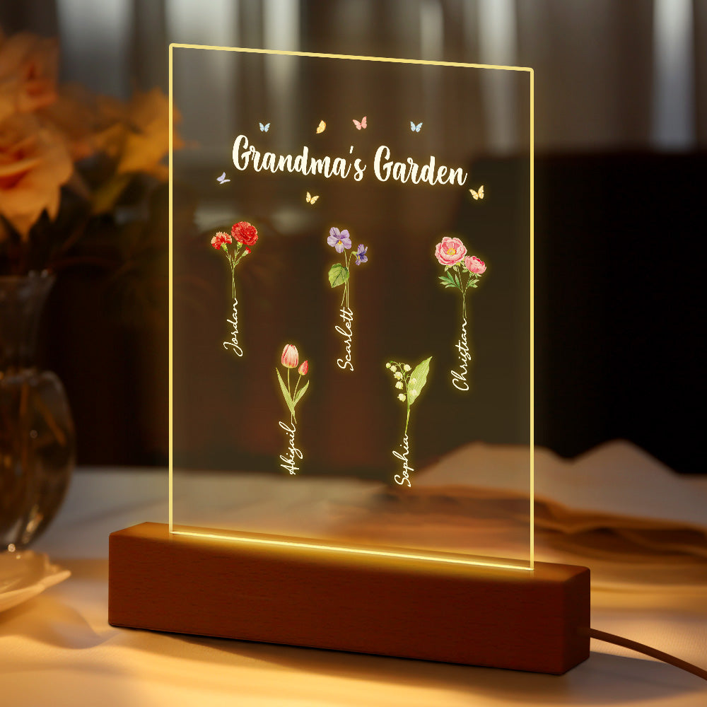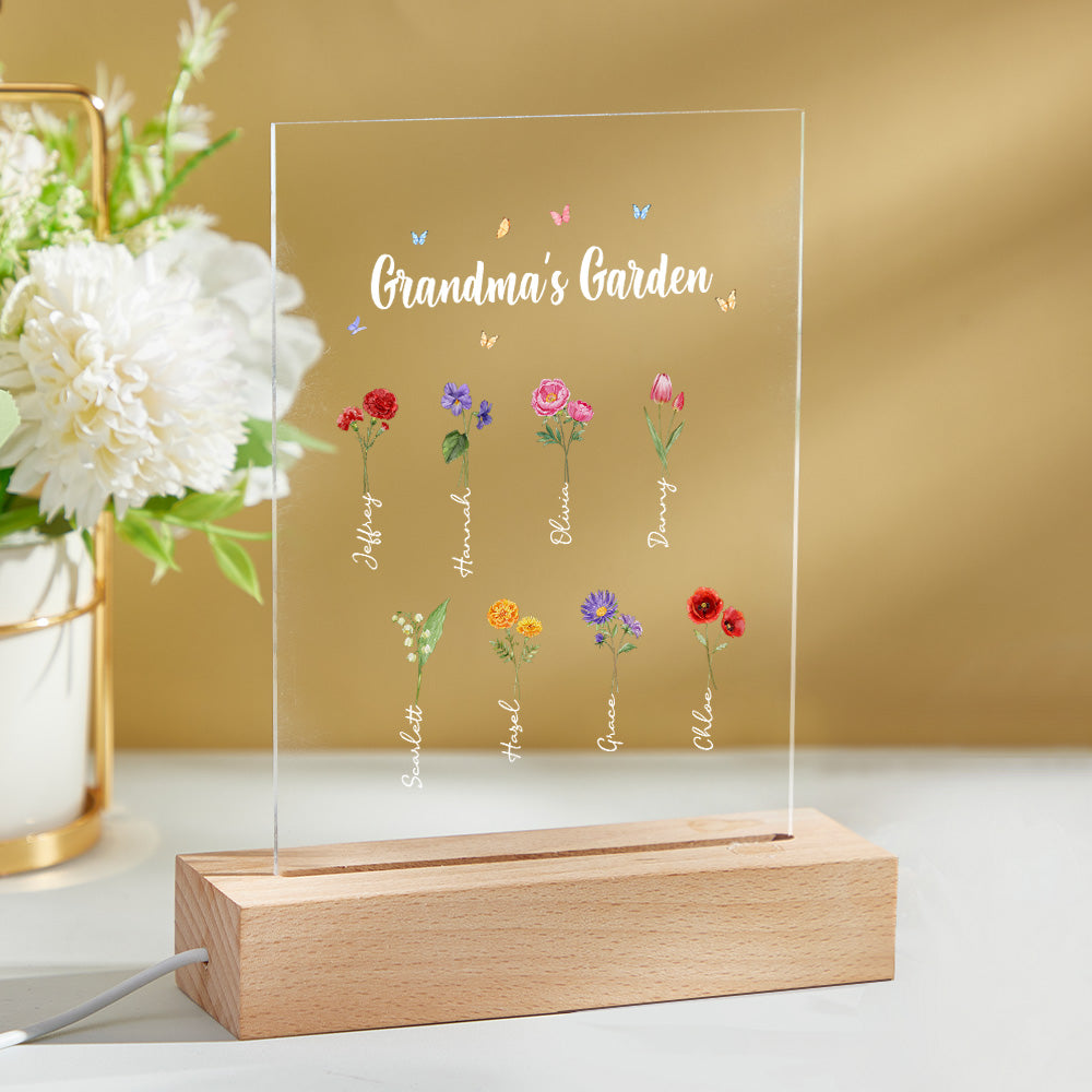 Personalisiertes Nachtlicht, Omas Garten, Geburtsmonat, Blumengeschenk