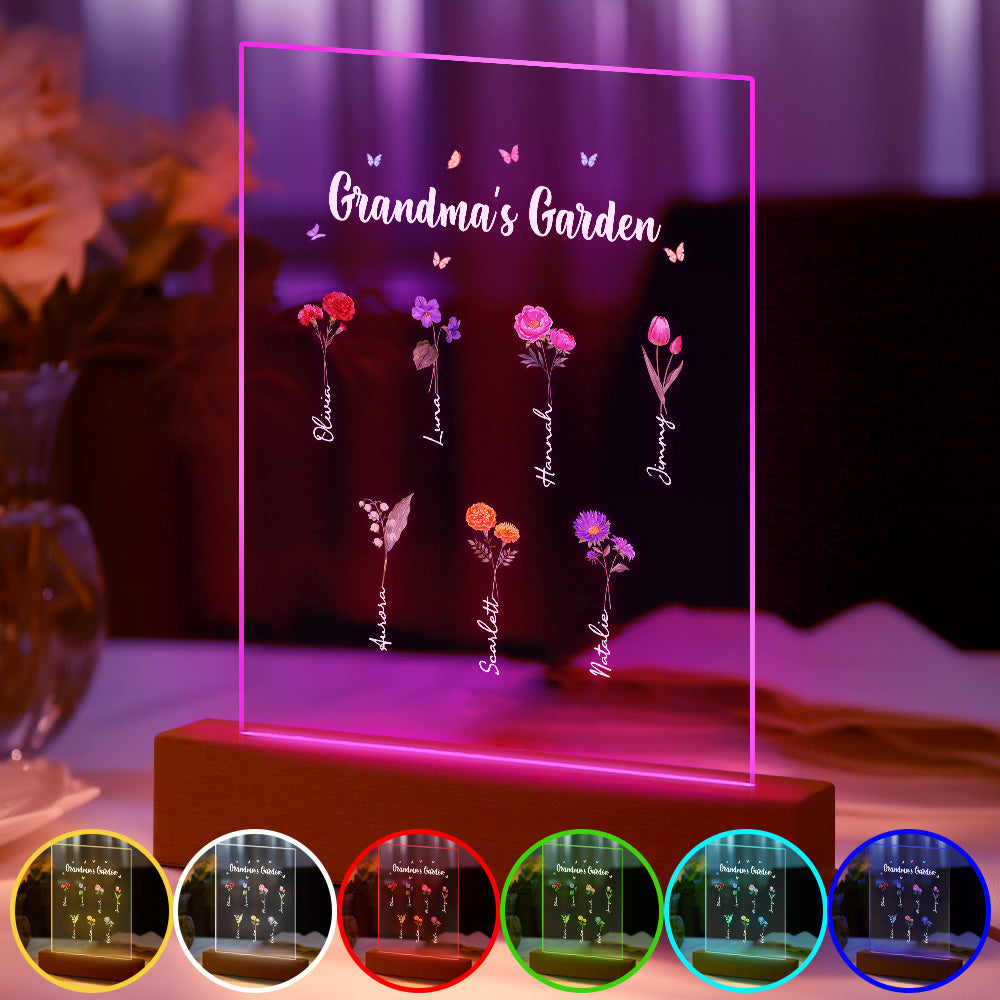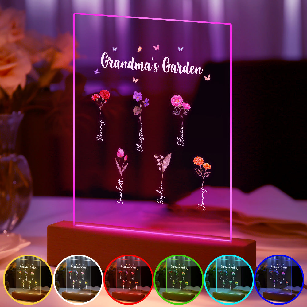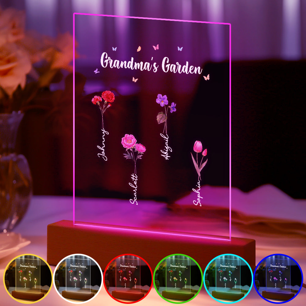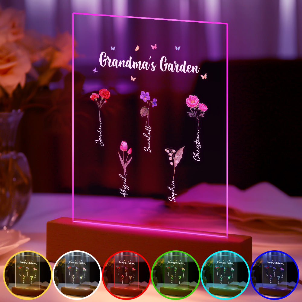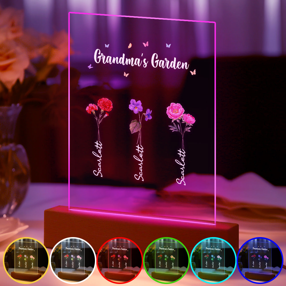 Personalisiertes Nachtlicht, Omas Garten, Geburtsmonat, Blumengeschenk