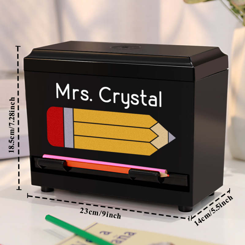 Dieser personalisierte Stiftspender ist das perfekte Geschenk zum Lehrertag, um Ihre Wertschätzung für Ihren Lieblingslehrer zu zeigen. Mit der zusätzlichen Note seines Namens ist dieser Spender nicht nur praktisch, sondern auch durchdacht. Halten Sie Stifte organisiert und leicht zugänglich und verleihen Sie gleichzeitig jedem Schreibtisch eine persönliche Note.
