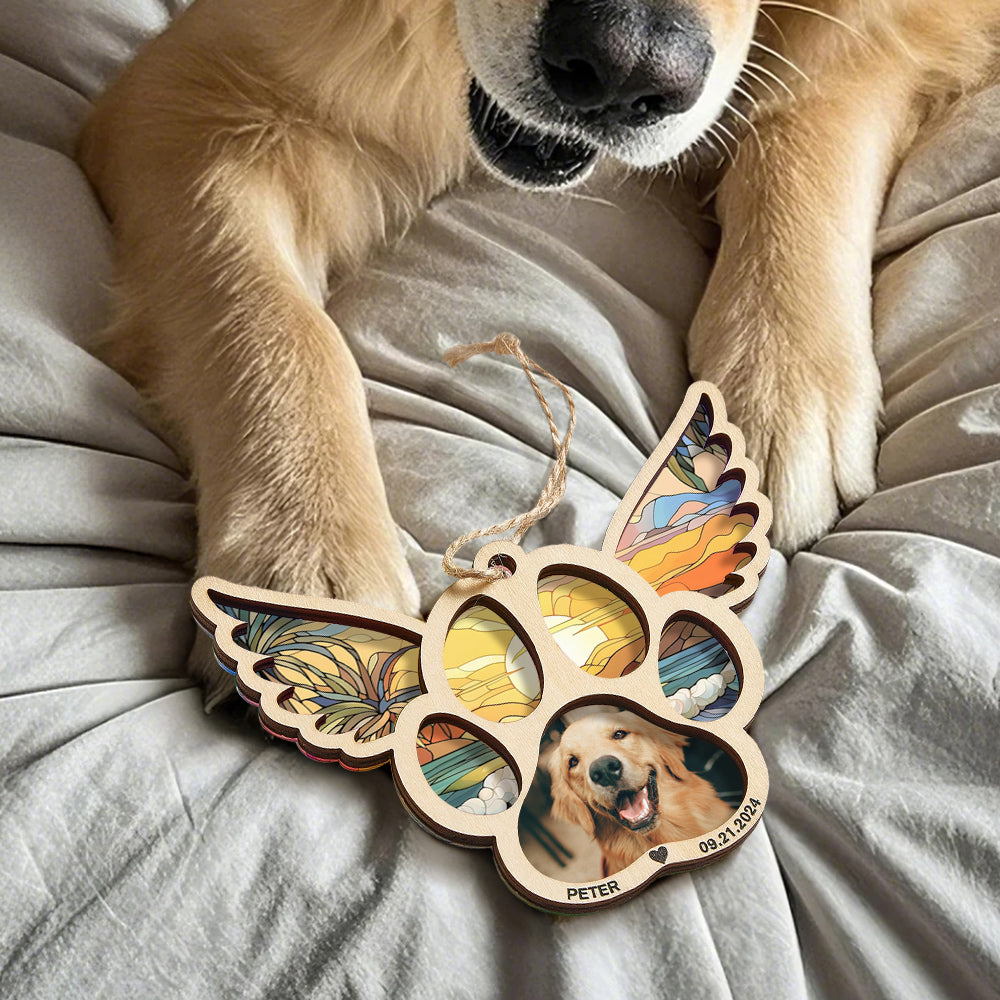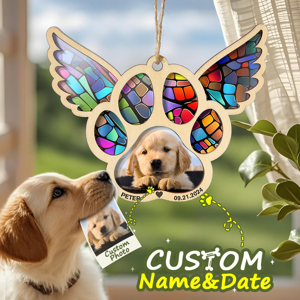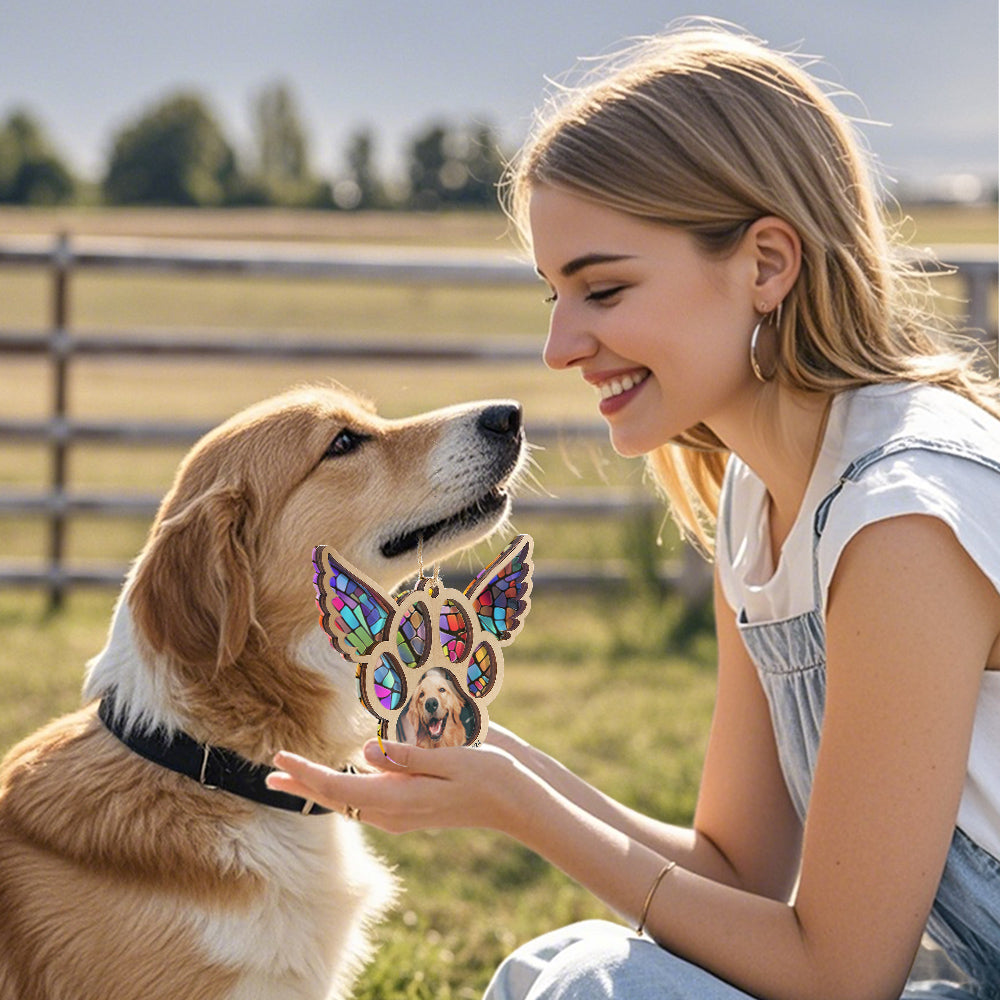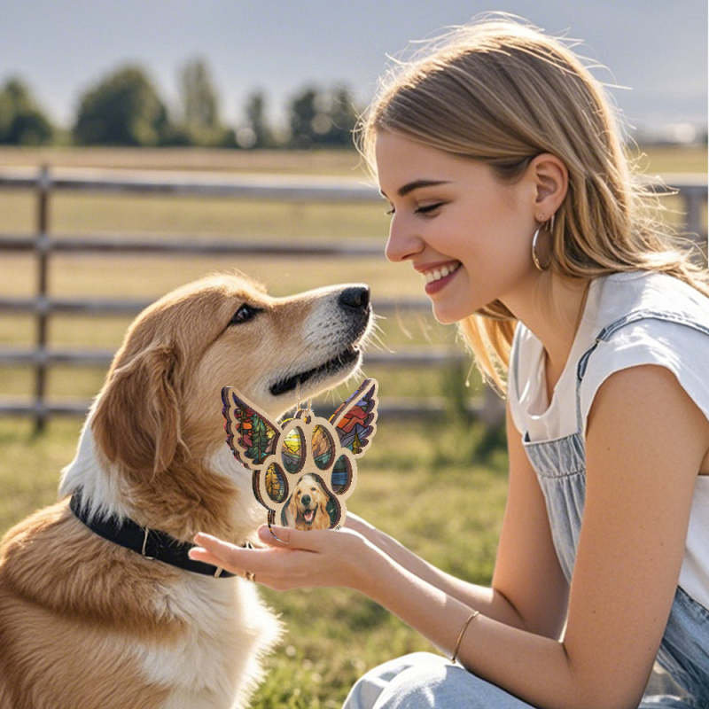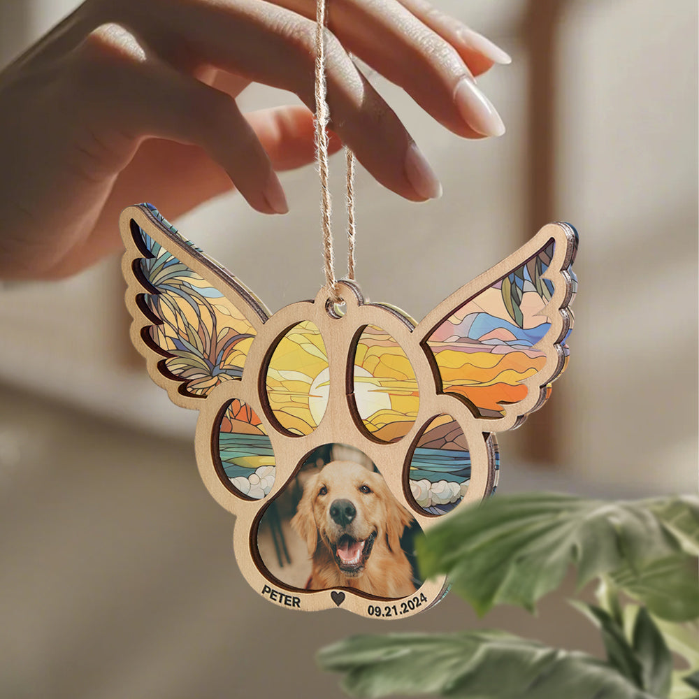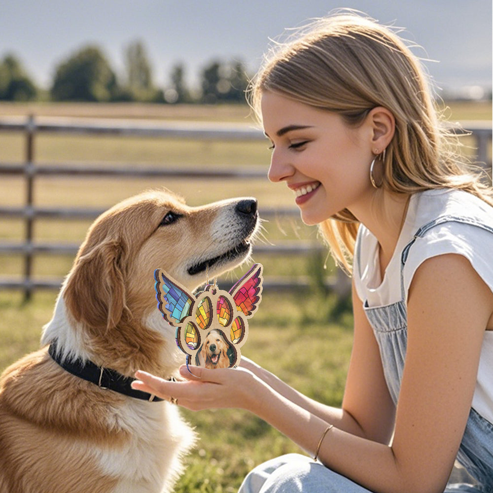 Personalisiertes Haustier-sonnenfänger-ornament Mit Foto, Pfotenabdruck-ornament, Erinnerungsgeschenk Für Haustierliebhaber