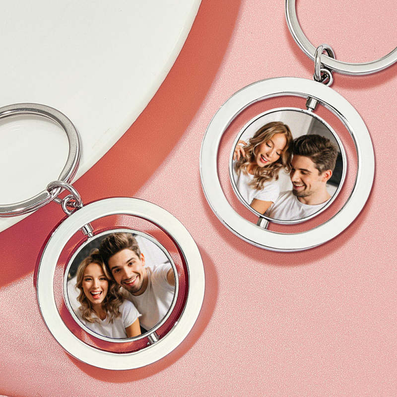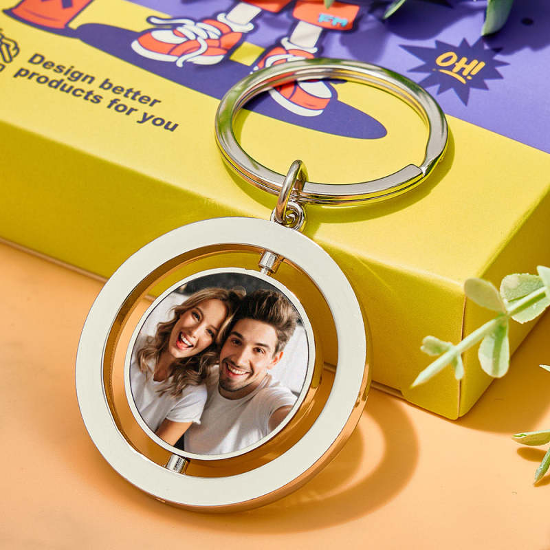 Personalisierter Foto-schlüsselanhänger, Individuelle Drehbare Doppelseitige Schlüsselanhänger, Geschenke Für Liebhaber
