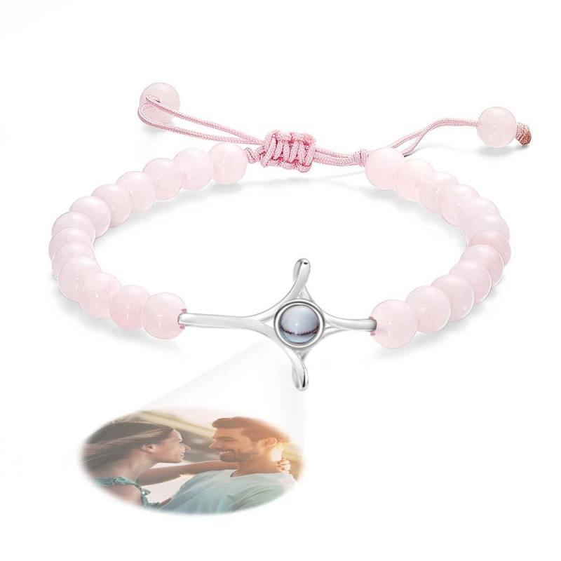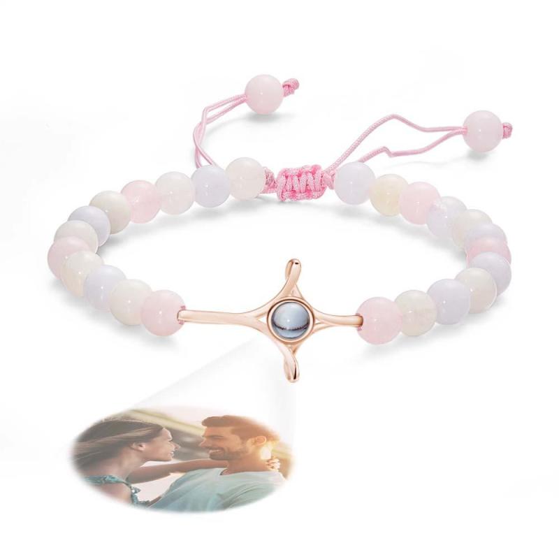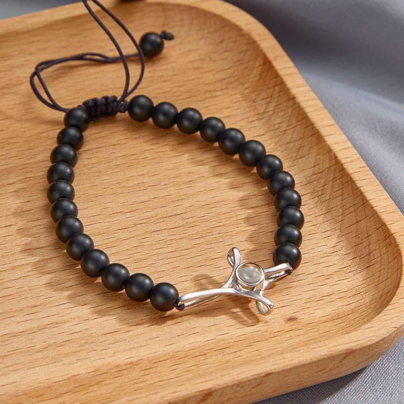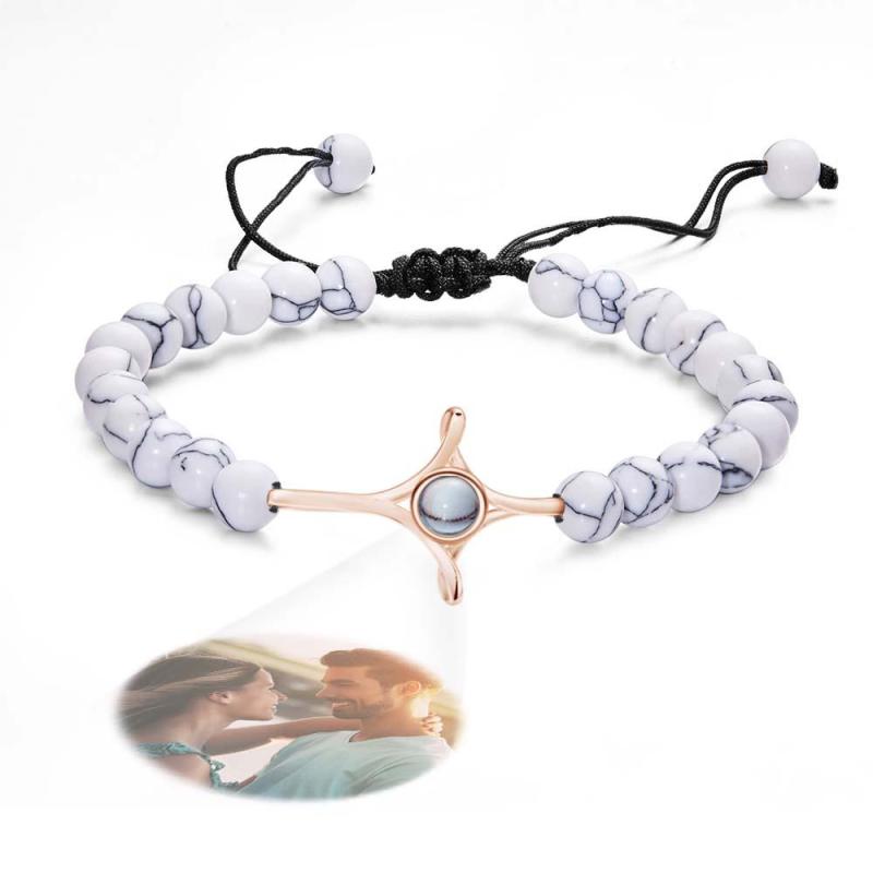 Personalisiertes Fotoprojektionsperlen Armband Mit Kreuz Gedenkgeschenk Für Sie