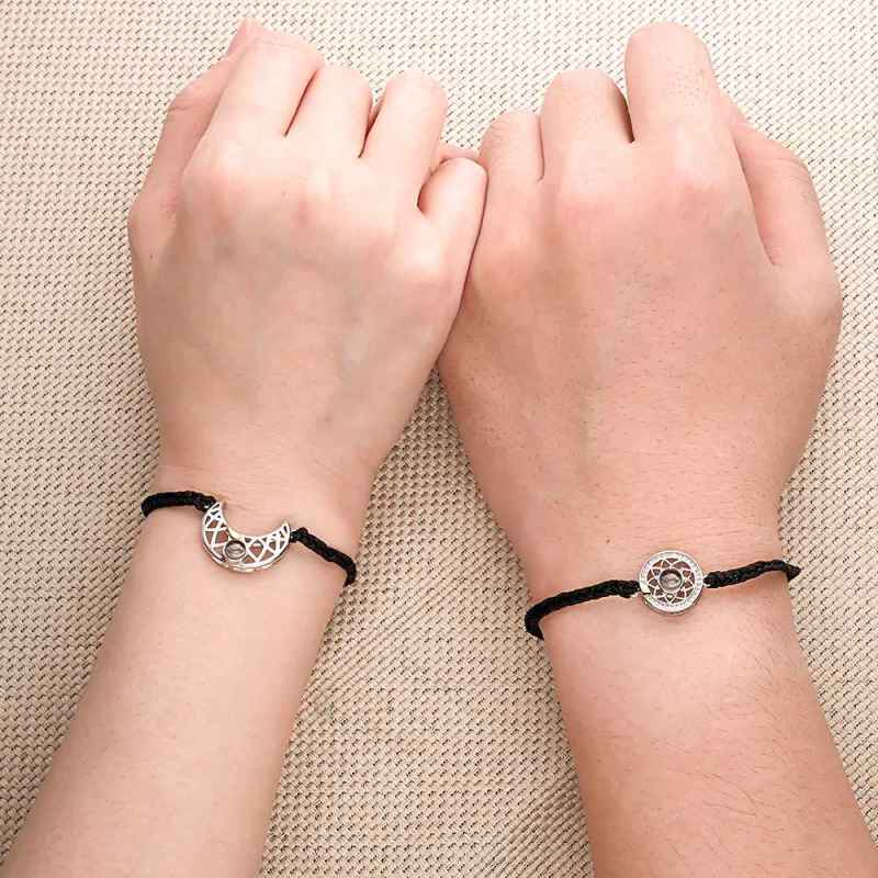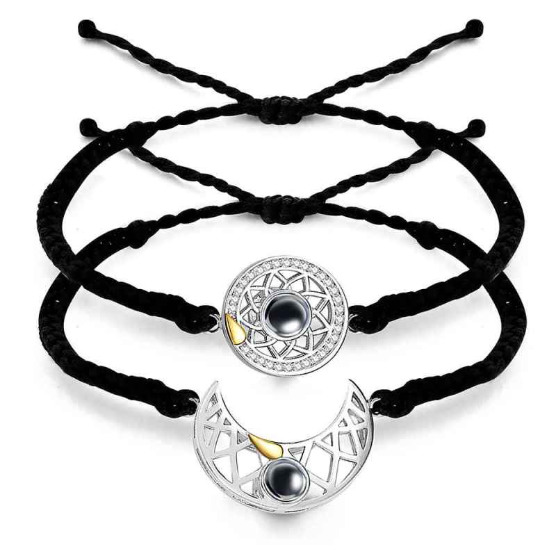 Personalisiertes Armband Mit Fotoprojektion, Sonne Und Mond, Geflochtenes Seilarmband Für Paare