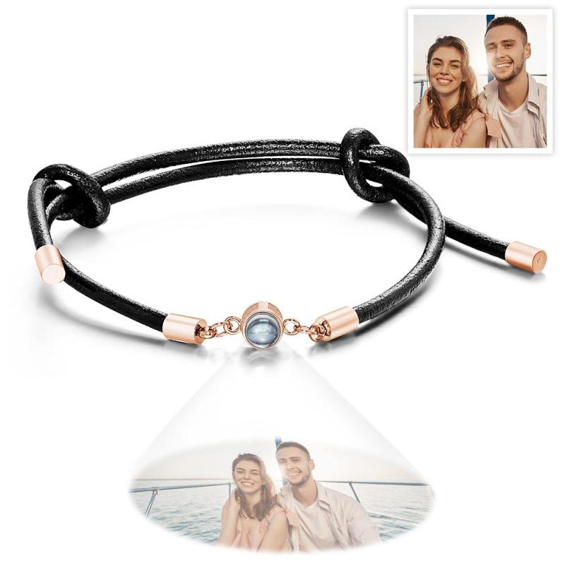 Personalisiertes Fotoprojektions-lederarmband, Verstellbares Armband, Geschenke Für Ihn