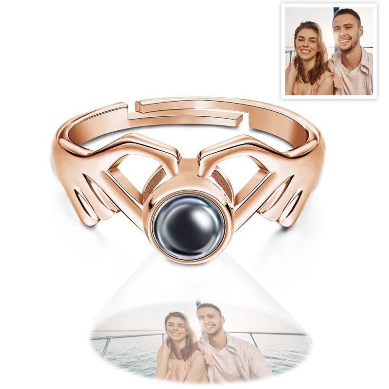Personalisierter Fotoprojektionsring Finger Kombi Herzring Für Sie