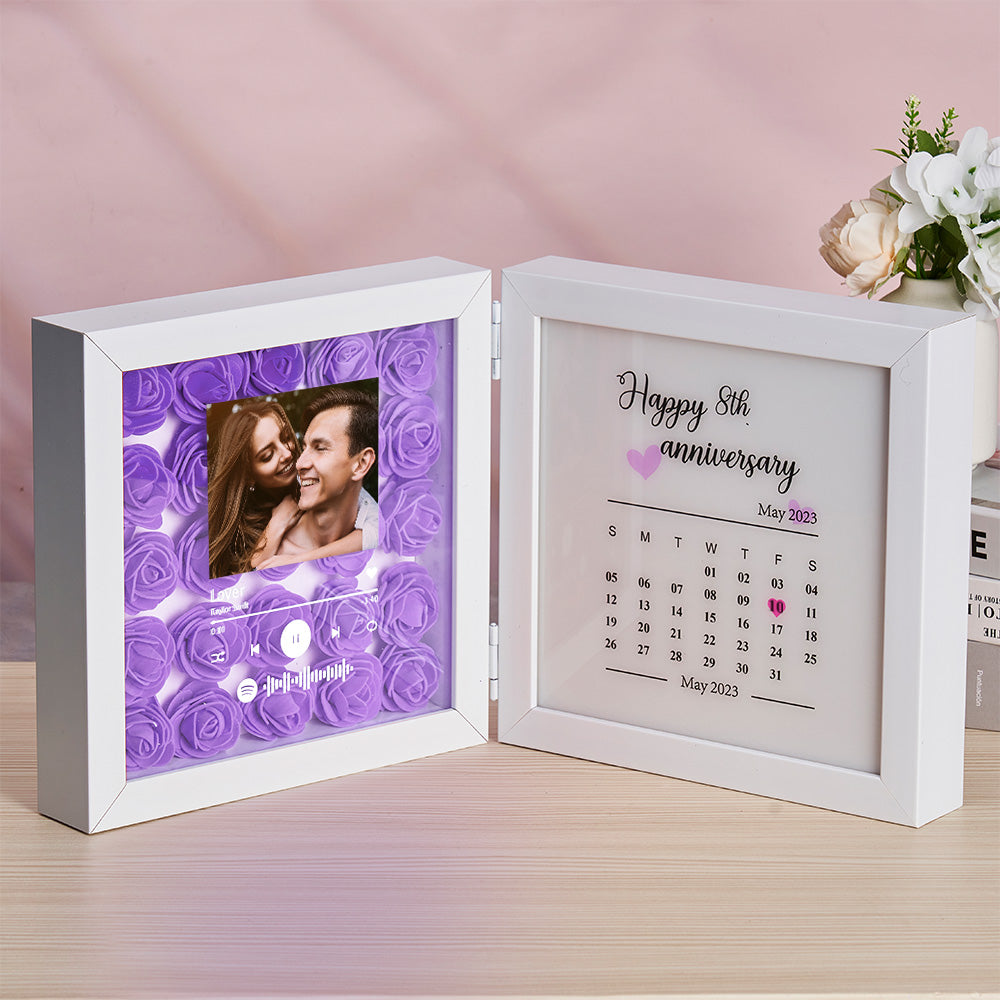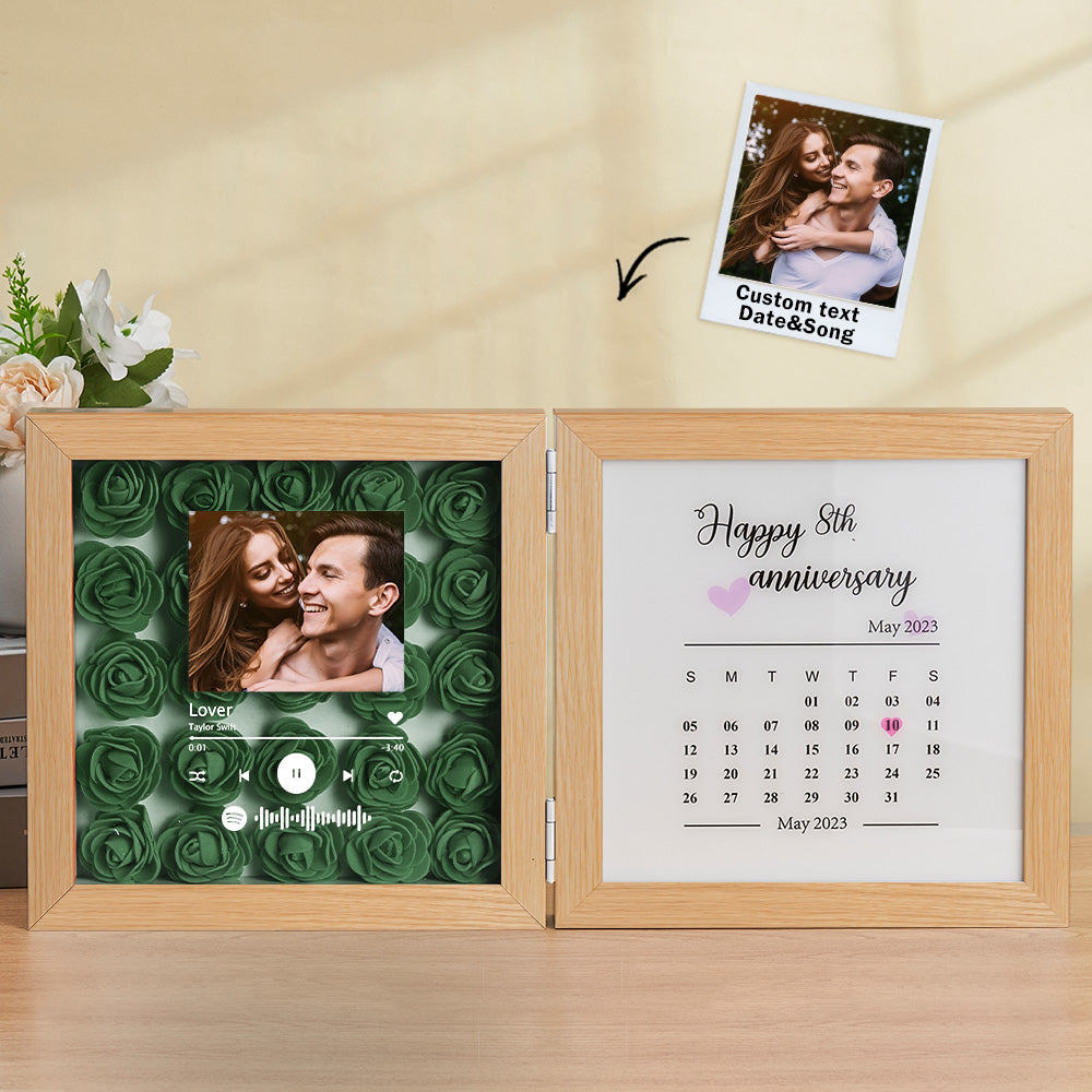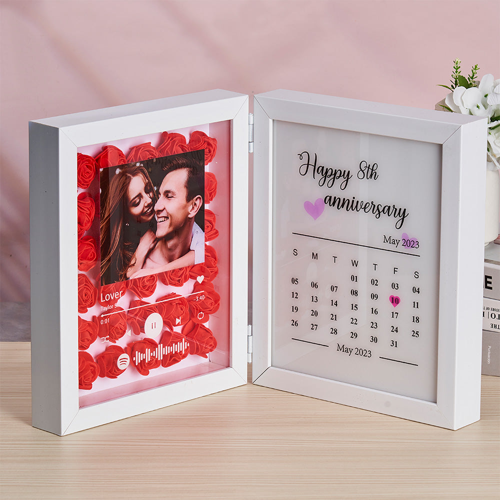 Personalisierter Foto-rosen-blumen-faltrahmen, Individuelles Musik-code-jubiläumsgeschenk Für Paare