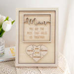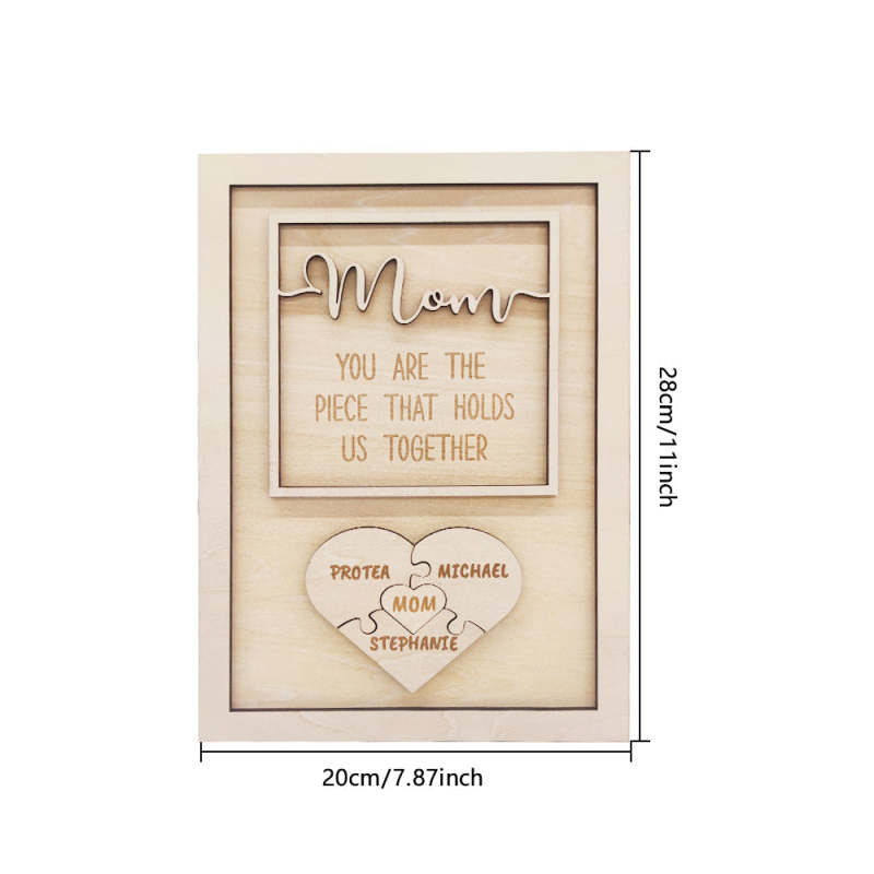 Personalisierte Rahmen für die Heimdekoration können mit dem Bild Ihrer Familie und dem Namen eines Familienmitglieds (bis zu 6 Namen) individuell gestaltet werden. Und stolz verkünden "Du bist das Stück, das uns zusammenhält" zu Mama.