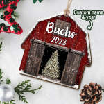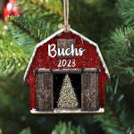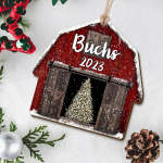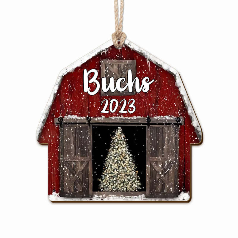 Personalisiertes Weihnachtsschmuck-geschenk Mit Roter Scheune Für Die Familie