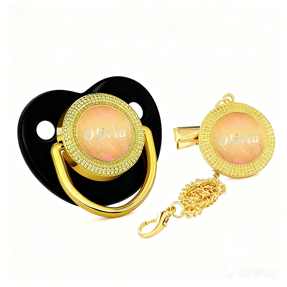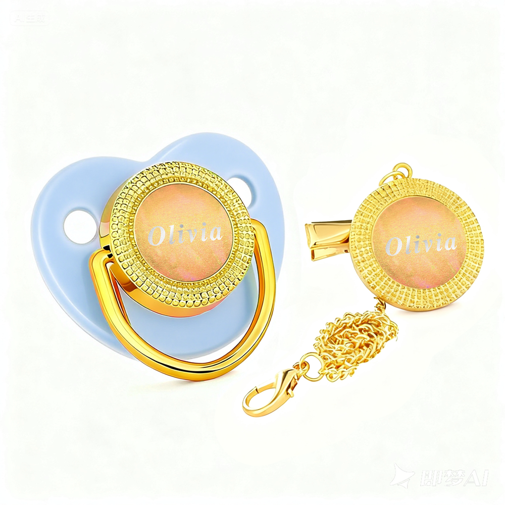 Verleihen Sie Ihrem Baby mit diesem personalisierten Luxus-Schnuller- und Clip-Set einen Hauch von Eleganz! Das Set aus Roségold mit einer wunderschönen Perlmuttintarsie ist nicht nur ein edles Accessoire, sondern sorgt auch für sicheren Halt des Schnullers. Schnuller und Clip können mit dem Namen Ihres Babys personalisiert werden und werden so zu einem einzigartigen Erinnerungsstück.