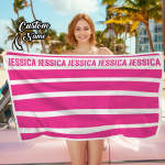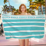 Personalisiertes Gestreiftes Strandtuch Mit Namen, Strandaccessoires, Geschenk Für Familienkinder