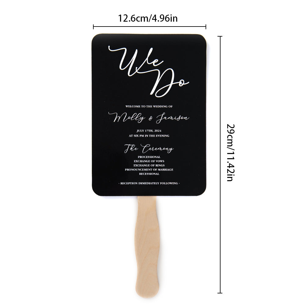 Wir stellen Ihnen unser personalisiertes Hochzeitsprogramm-Fangeschenk für Hochzeiten vor! Verleihen Sie Ihrem besonderen Tag eine einzigartige Note mit unseren personalisierten Hochzeitsprogramm-Fächern. Mit anpassbaren Details sind diese Fächer nicht nur eine stilvolle Ergänzung für Ihre Hochzeit, sondern sorgen auch dafür, dass Ihre Gäste während der Zeremonie kühl bleiben. Schaffen Sie mit unseren personalisierten Fächern ein unvergessliches Erlebnis für Ihre Gäste.