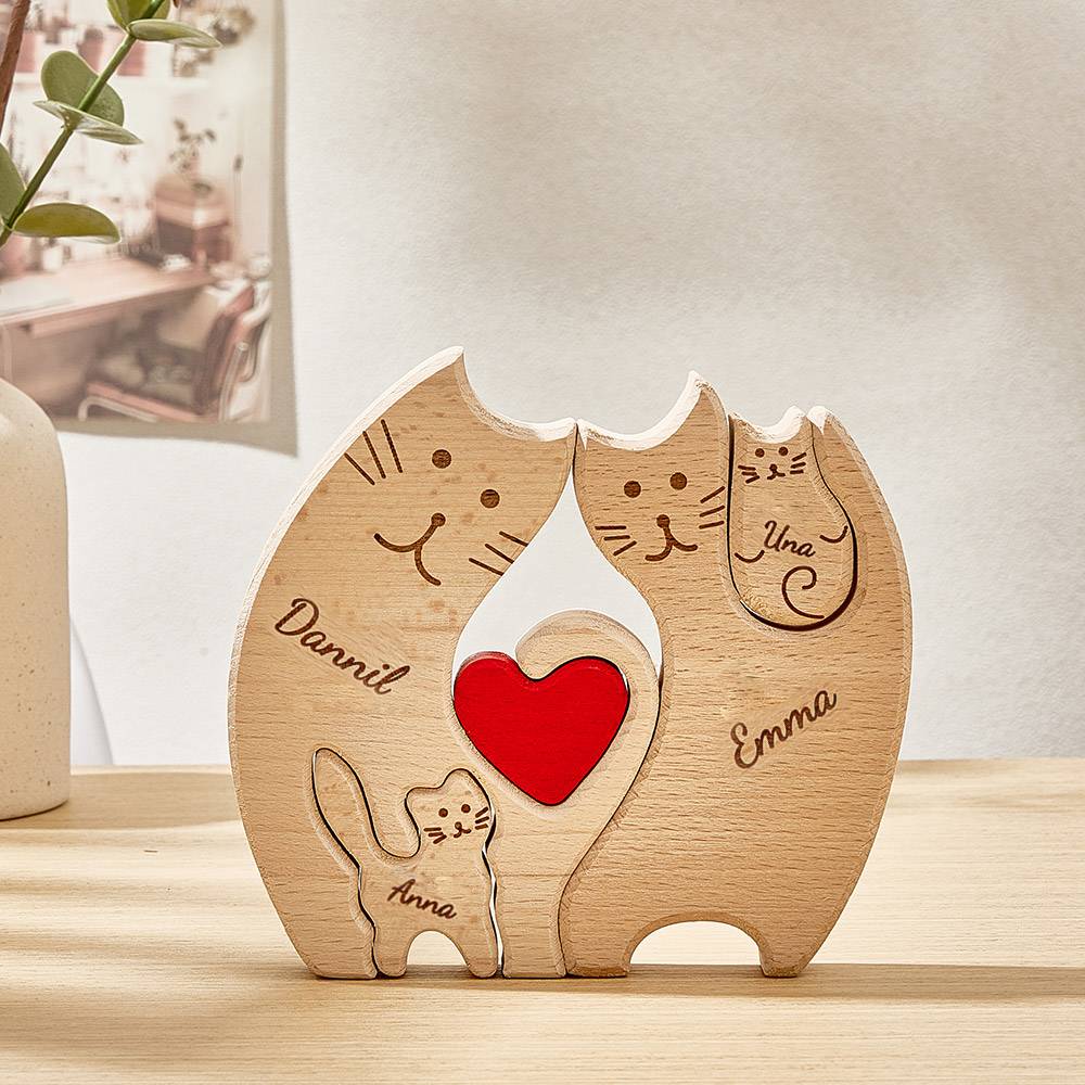 Personalisierte Holzkatzen, Individuelle Familienmitgliedernamen, Puzzle, Heimdekoration, Geschenke